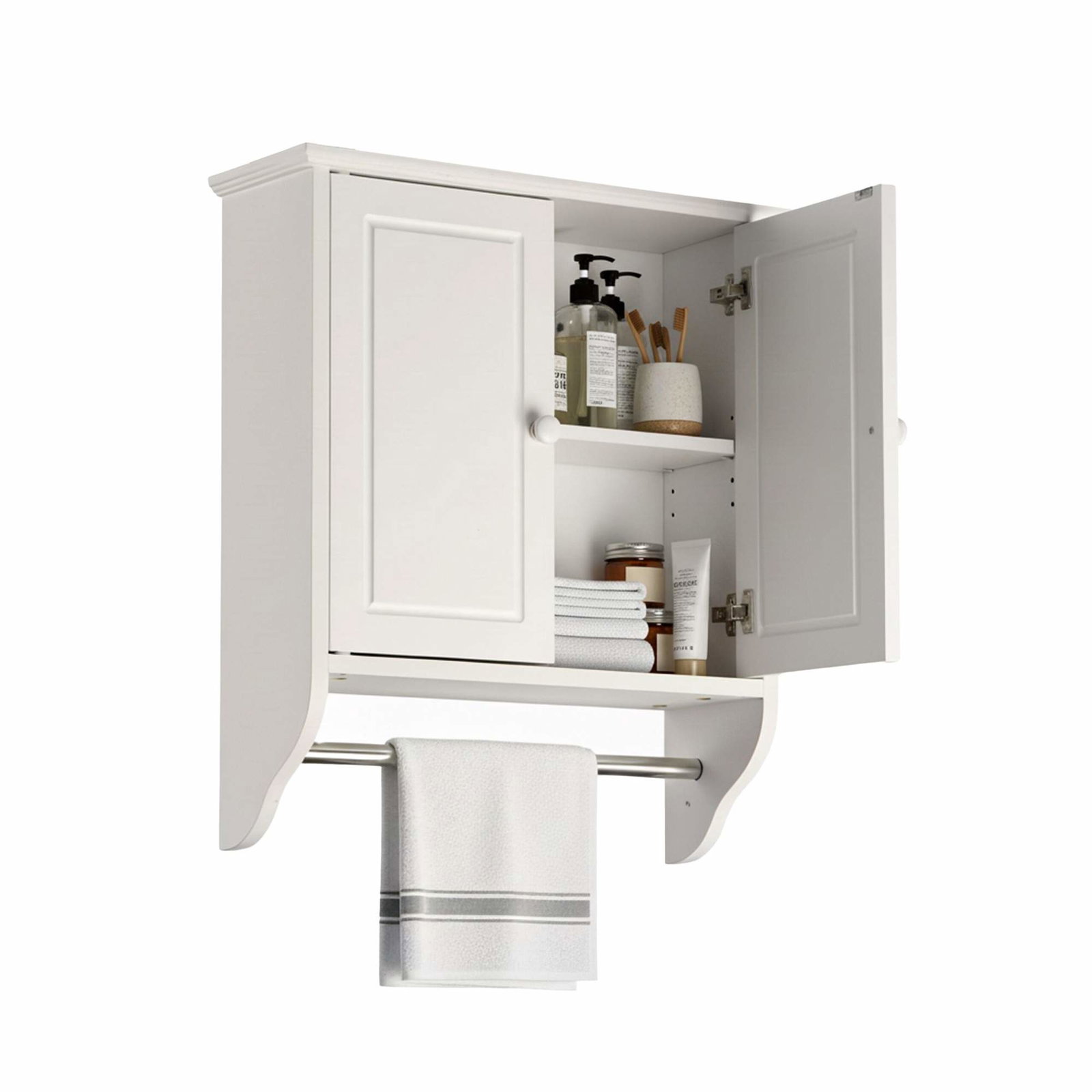 Baderomsskap med justerbare hyller og håndklestativ