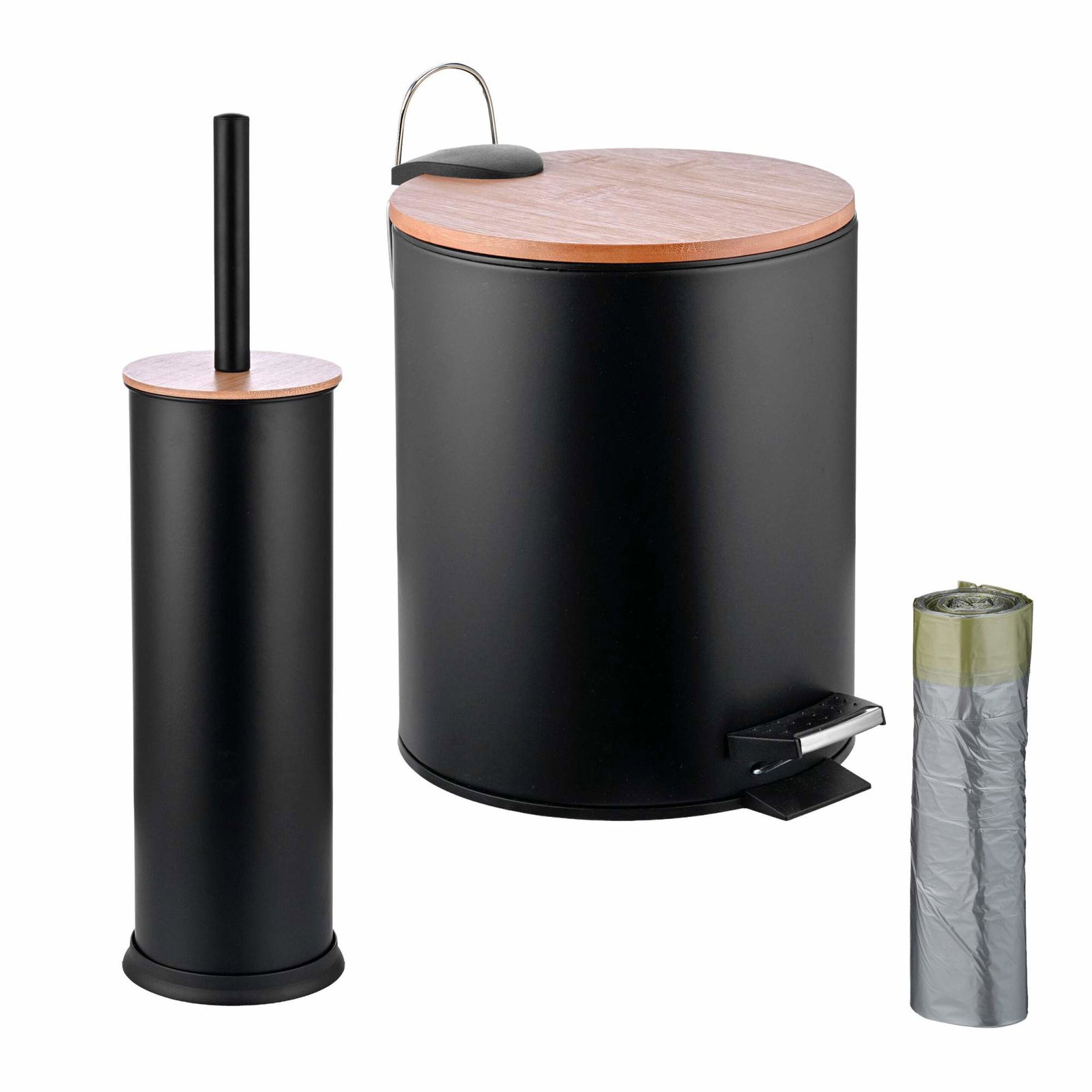 Baderomssett – 5L søppelbøtte og toalettbørste med bambuslokk