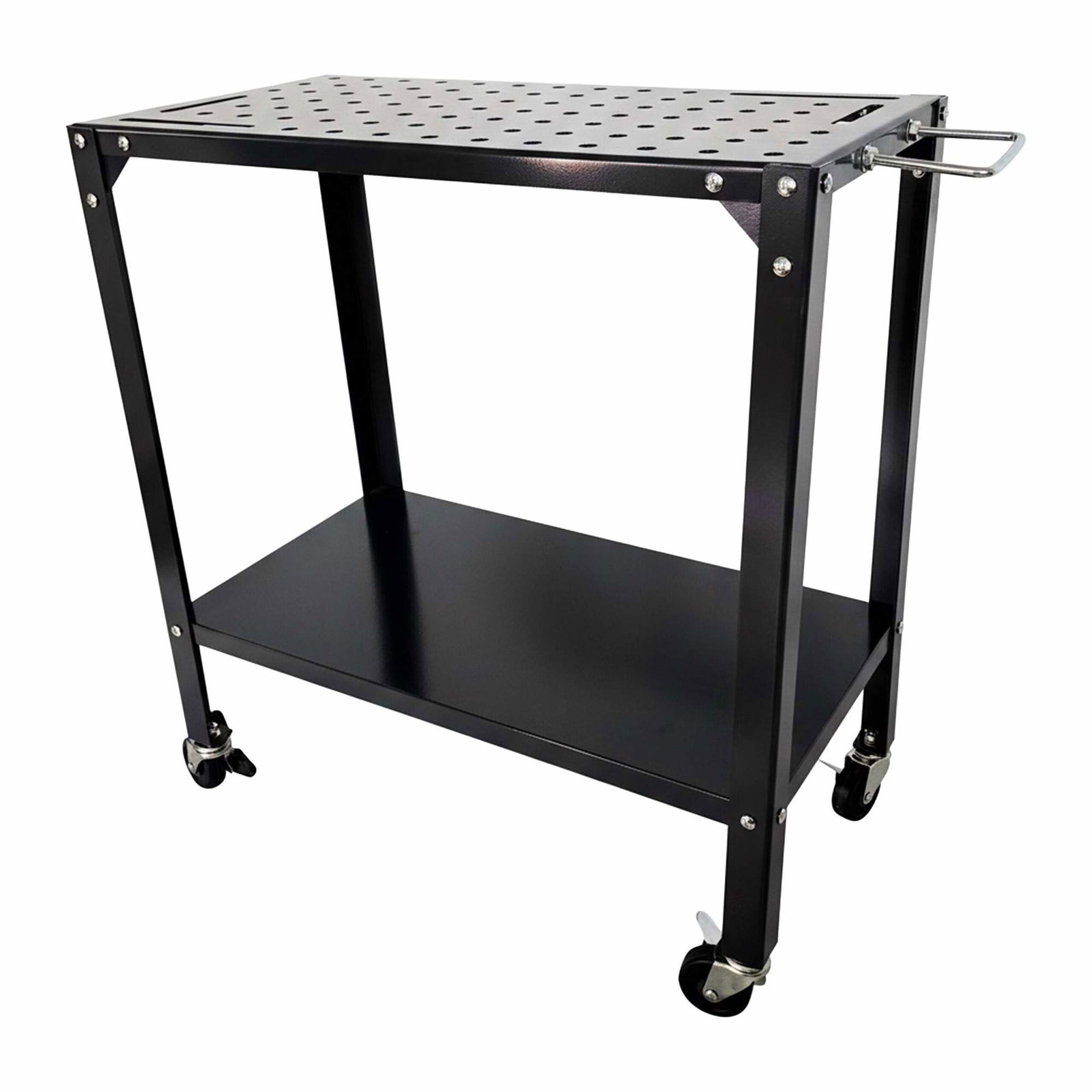 Mobilt sveisebord med perforert topp og låsbare hjul