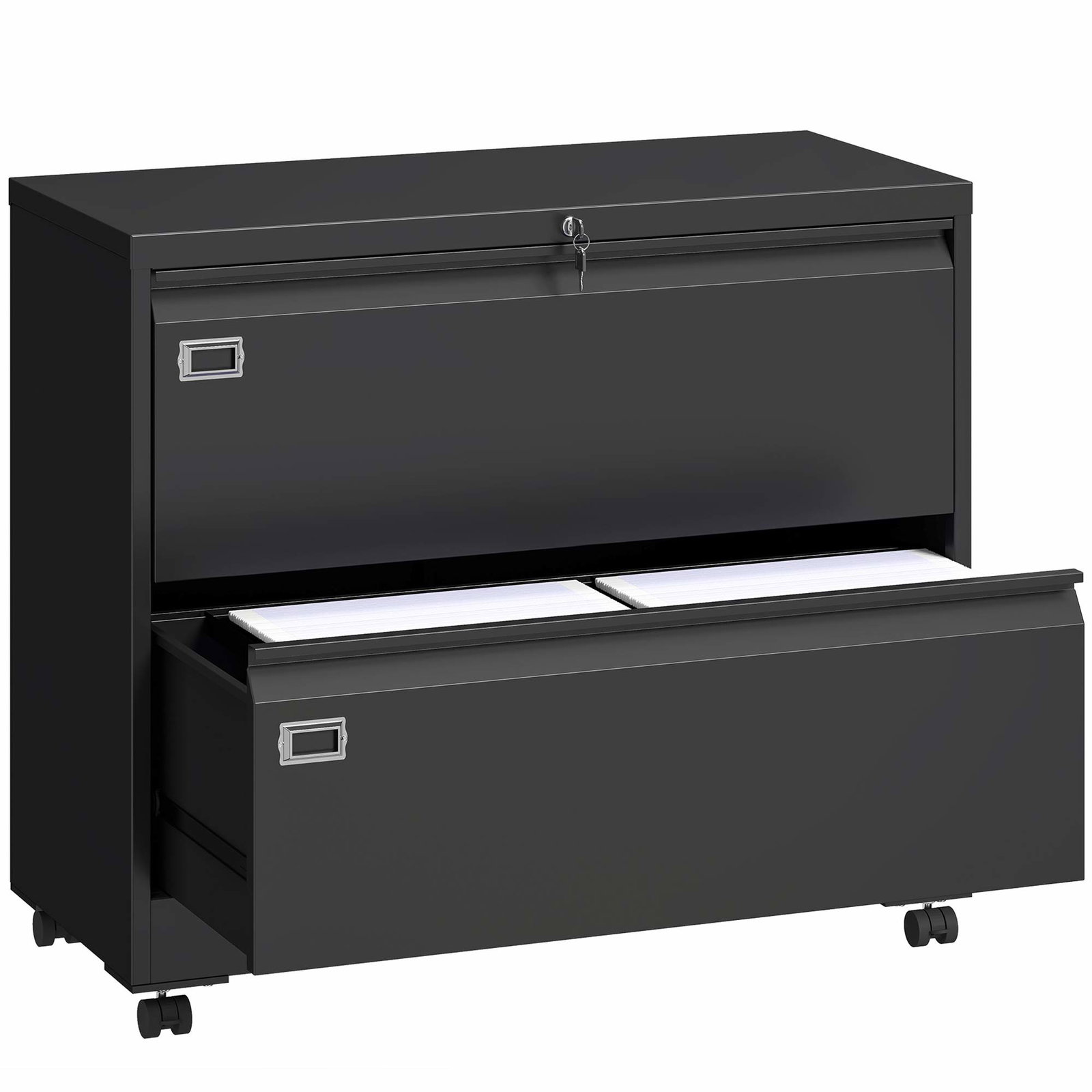 Låsbart arkivskap – 2 skuffer, justerbare skinner, svart