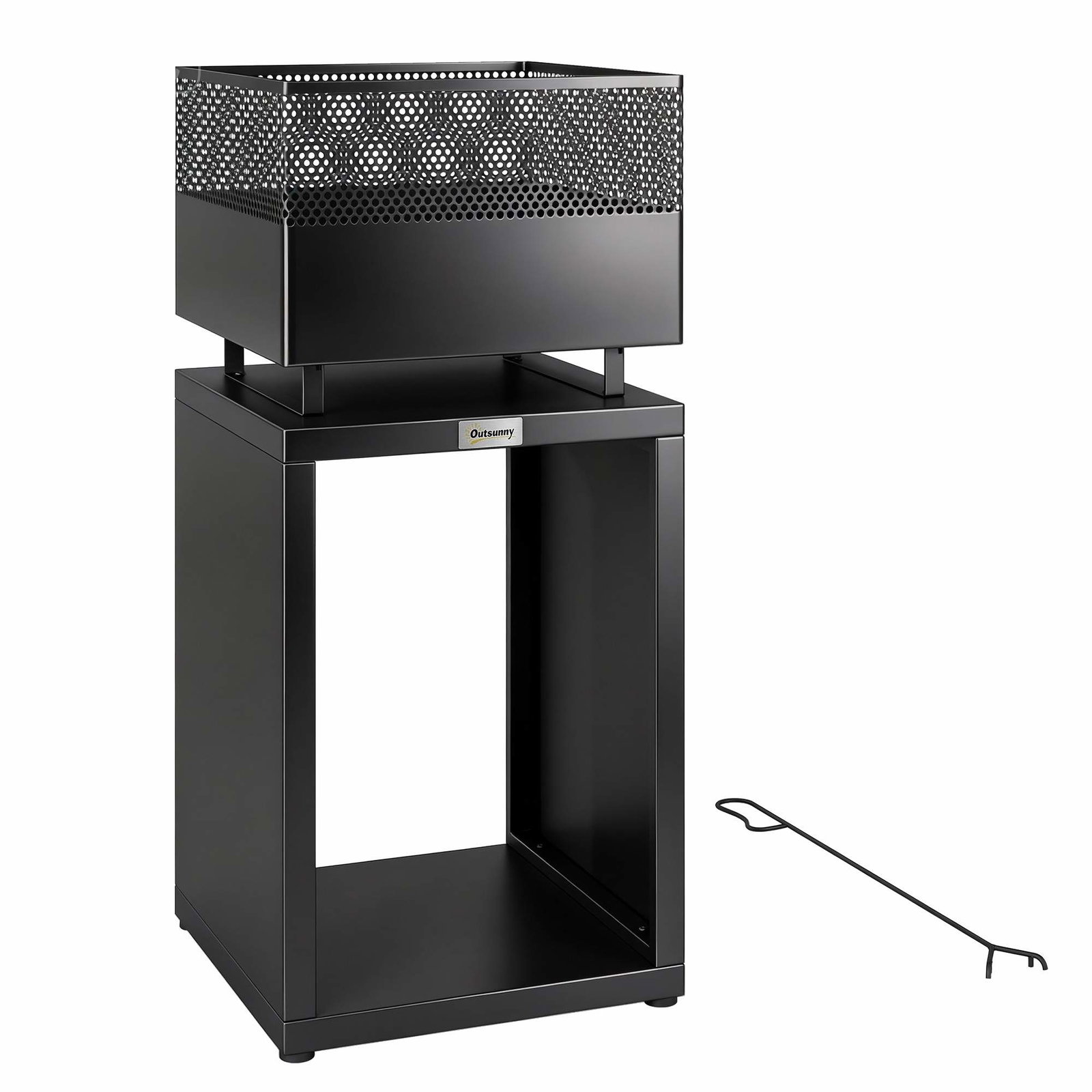 Bålplass med vedoppbevaring – 39 x 39 x 87 cm, svart