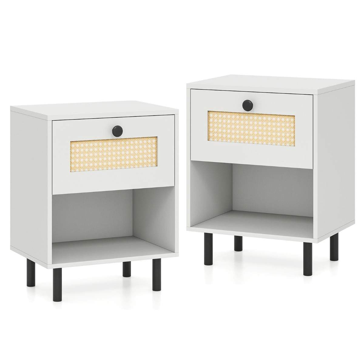 Nattbordsett i bohemsk stil med rottingskuff – 2 deler