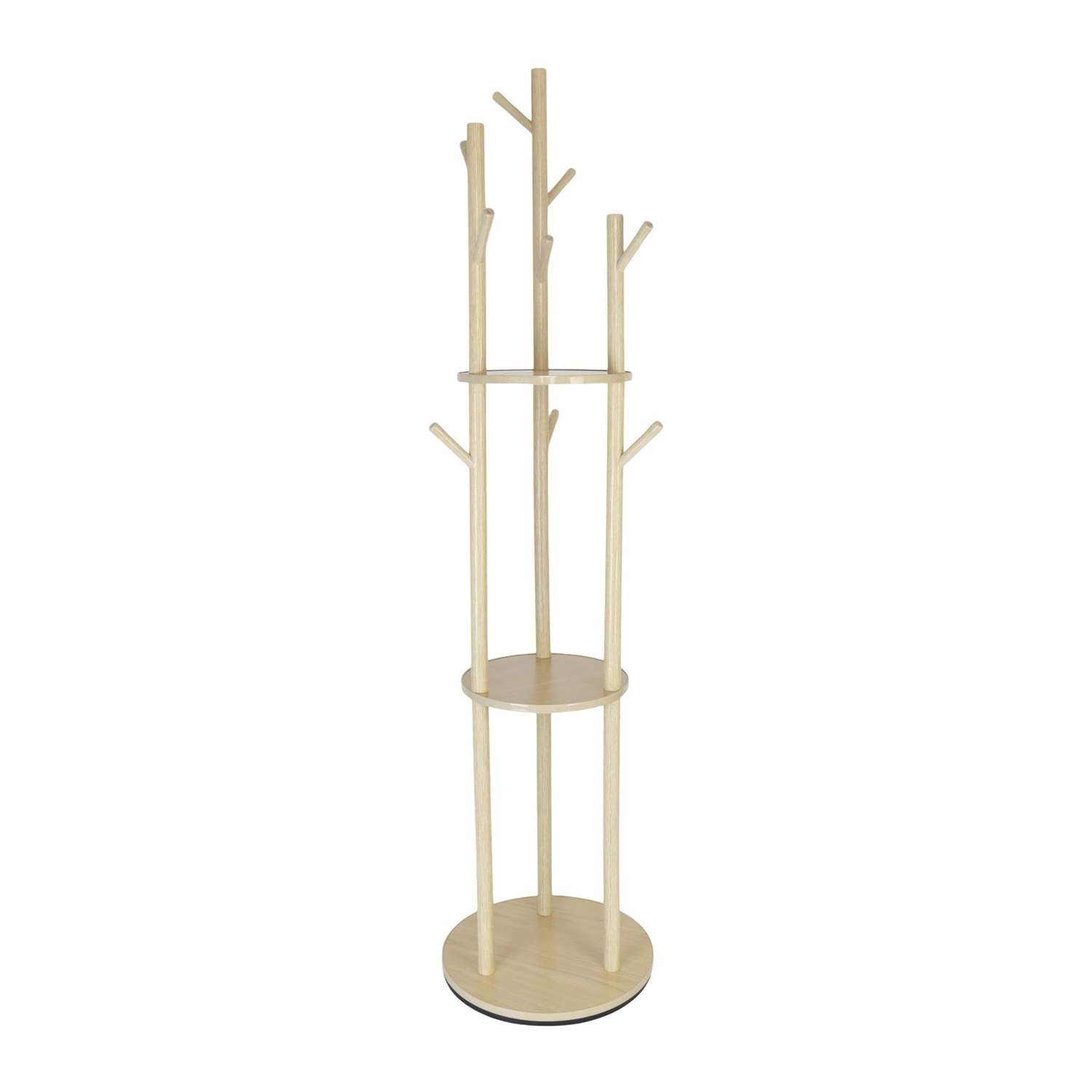 Roterende klesstativ med hyller – furu, plassbesparende