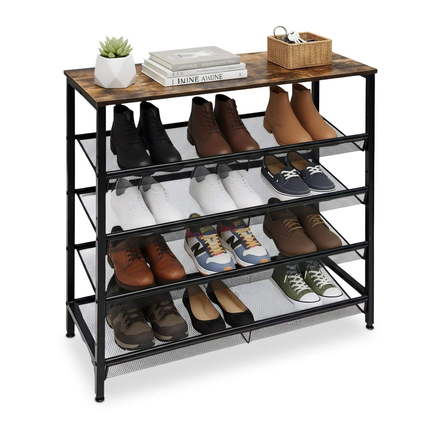 Industrielt skohylle – rustikke jernhyller, topp i treeffekt