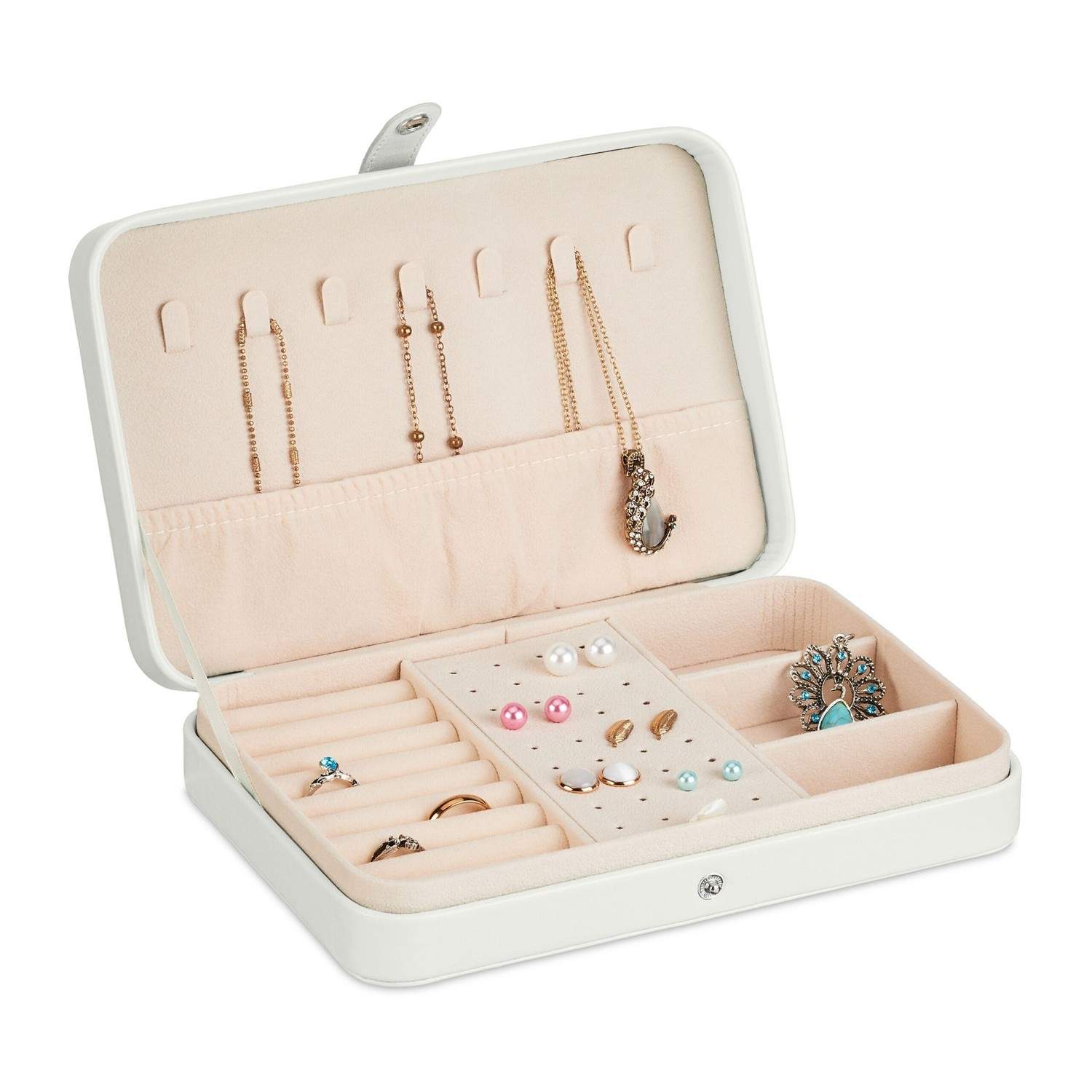 Reisesmykkeskrin – kompakt, skinnutseende, ripesikker