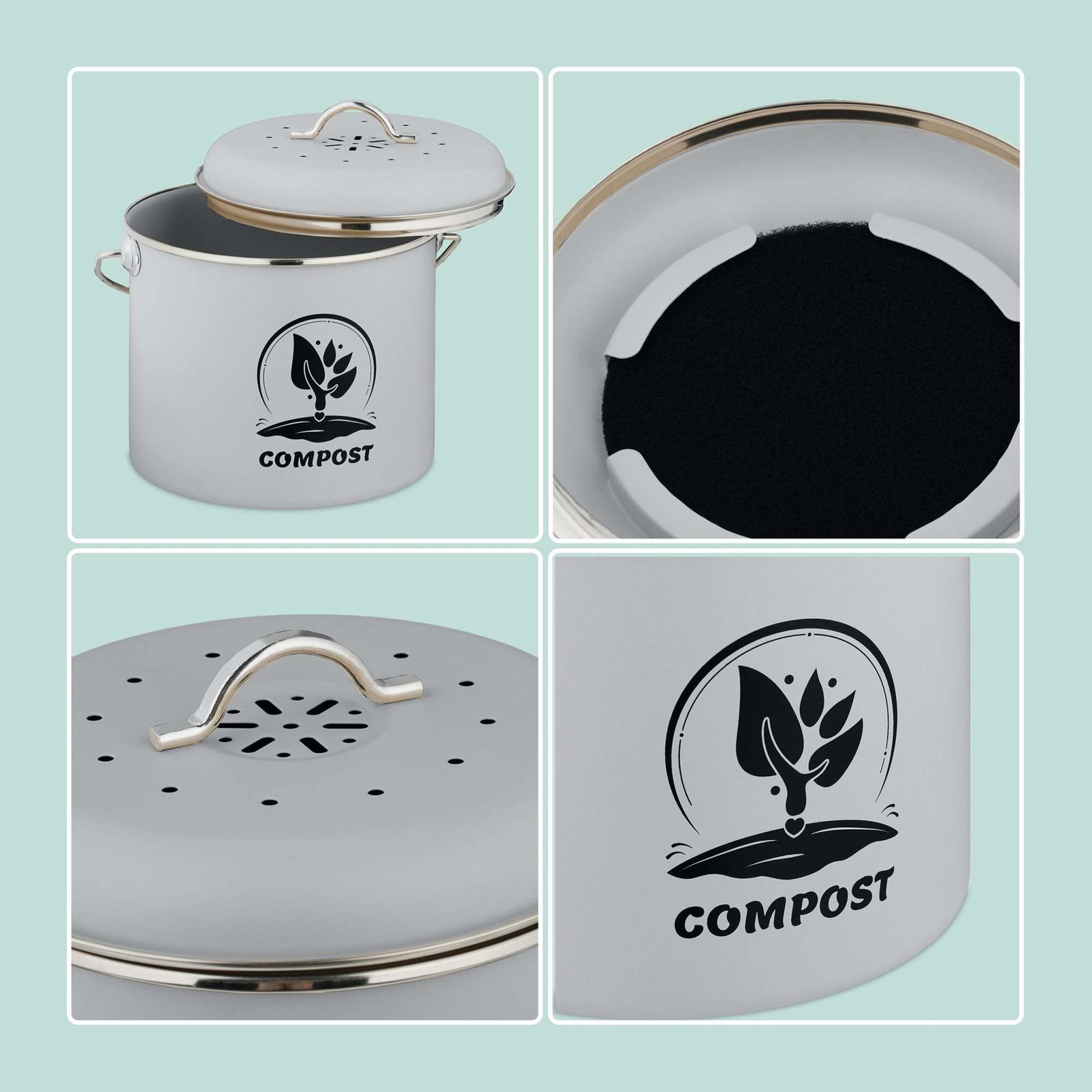 Kjøkkenkompostbeholder 3,5L – Luktfri med kullfilter