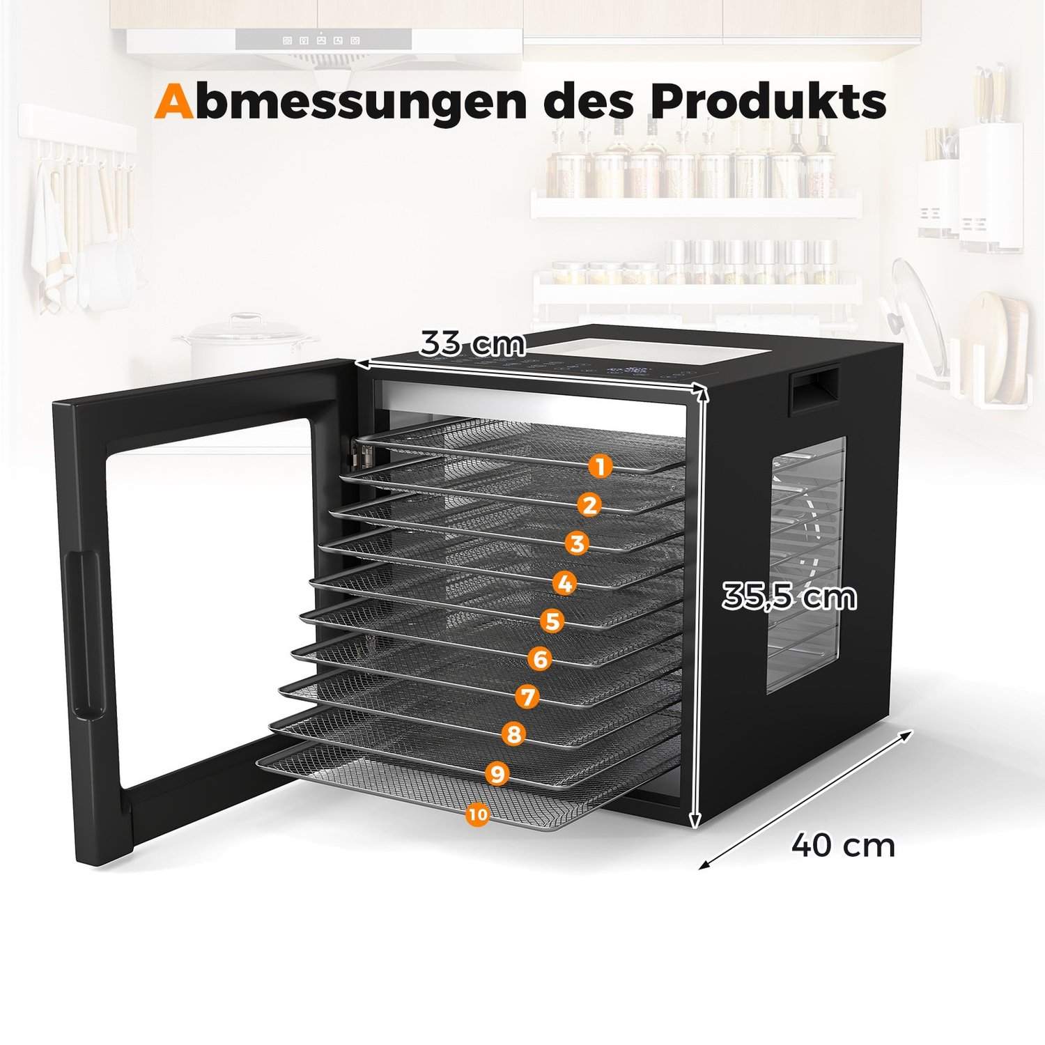 Matdehydrator med 10 brett – 360° luftstrøm, 48 timers timer
