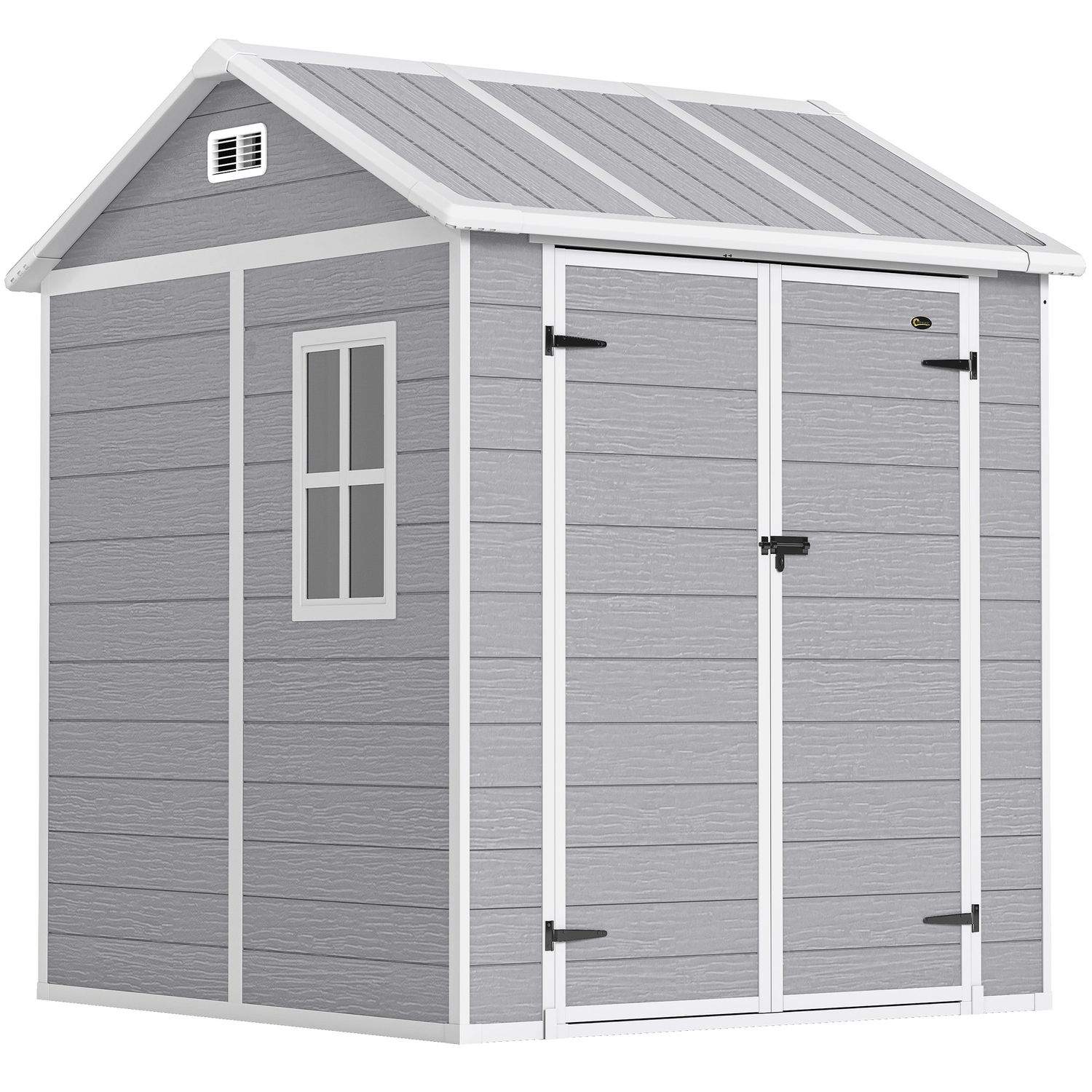 Hageskur i plast 1,14m² med gulv og vindu, grå