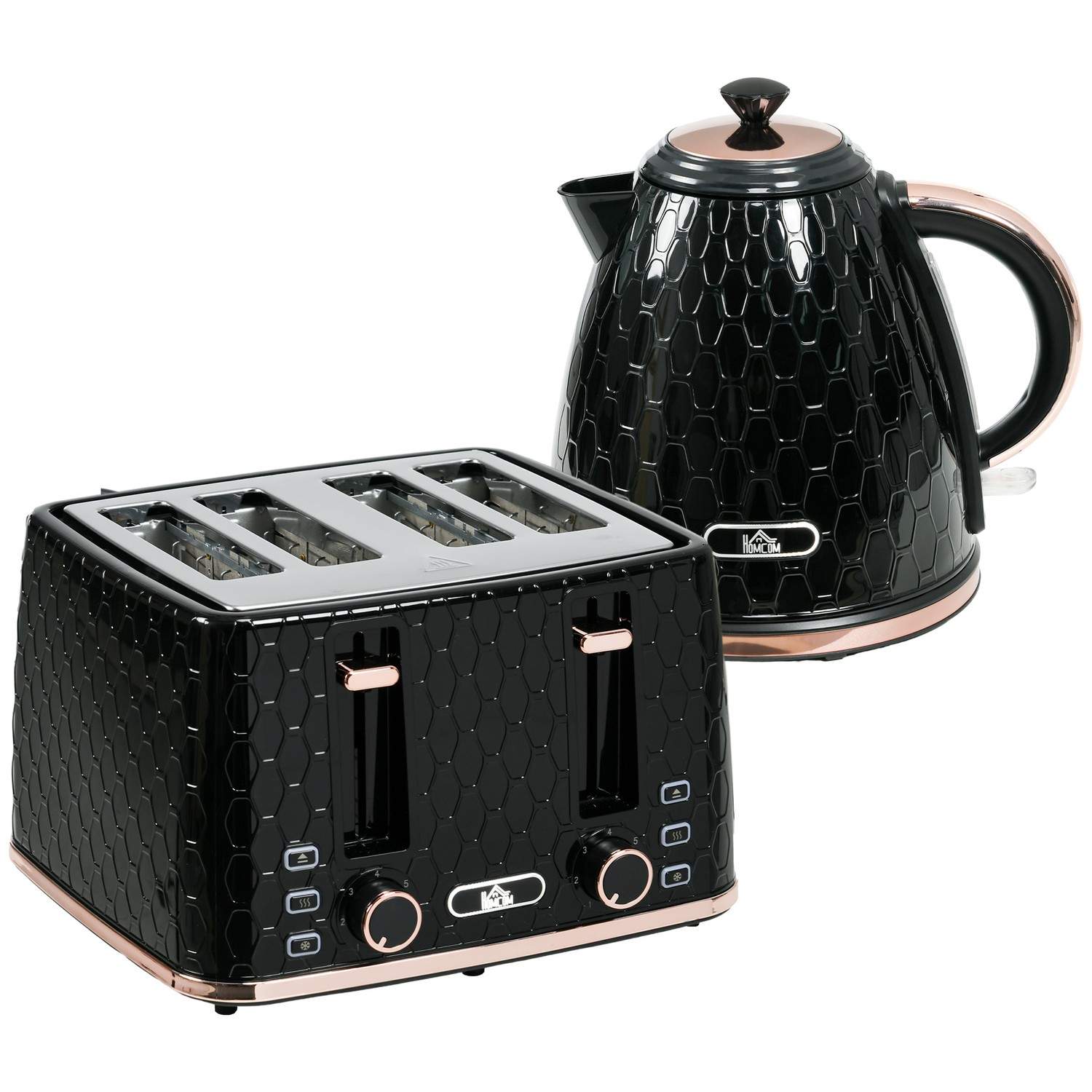 Vannkoker- og brødristersett, 1,7 l, rustfritt stål, svart