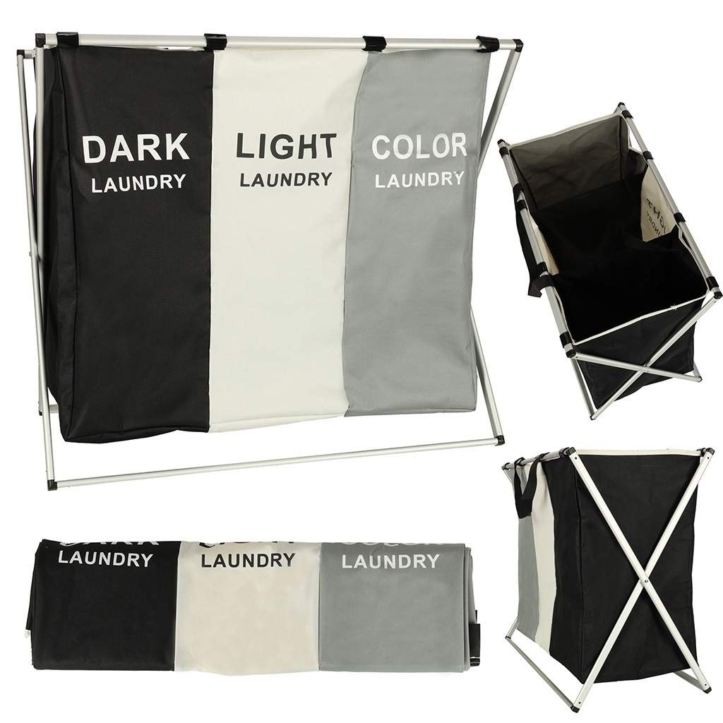 Tre-kammer skittentøyskurv 135L - Sort Lys, Mørk, Farget