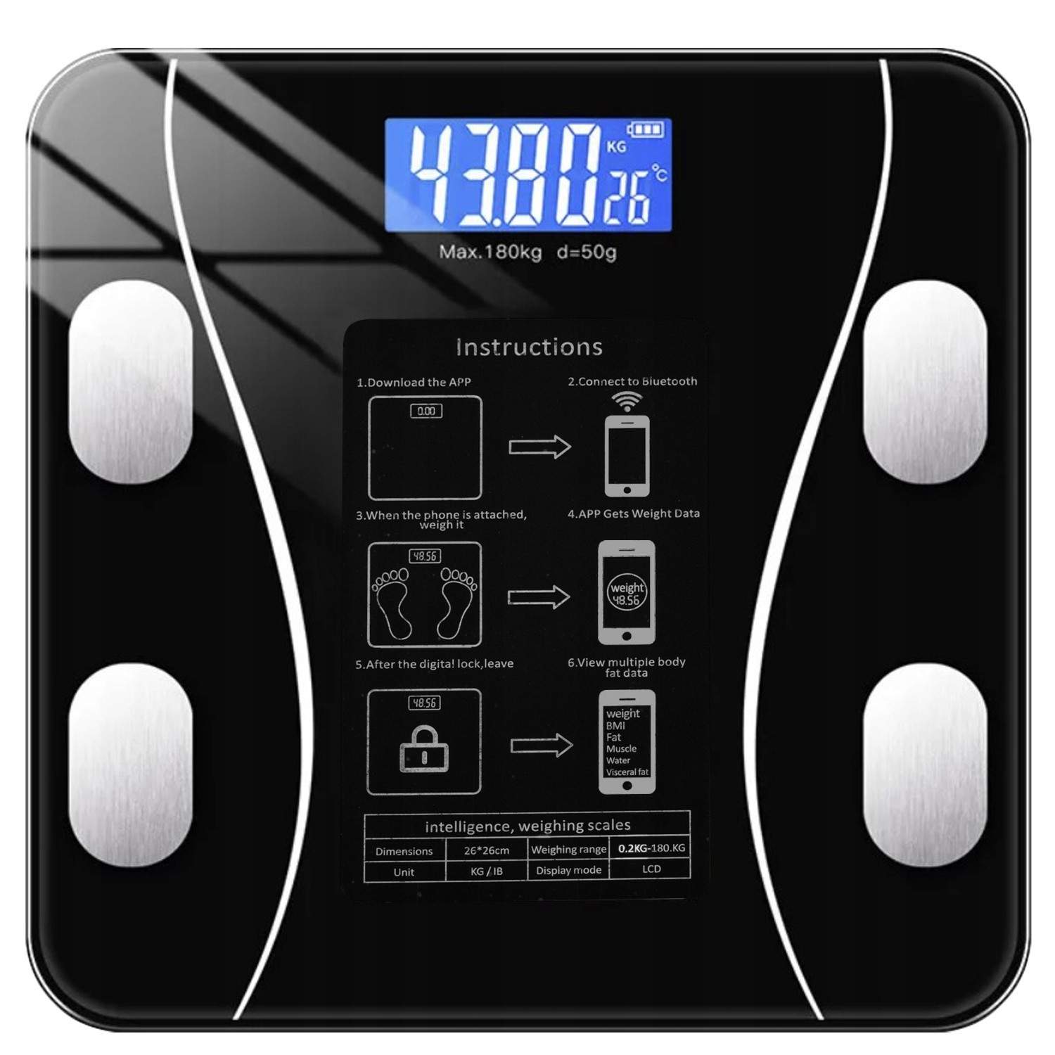 Smart personvekt med Bluetooth - måler opp til 180 kg