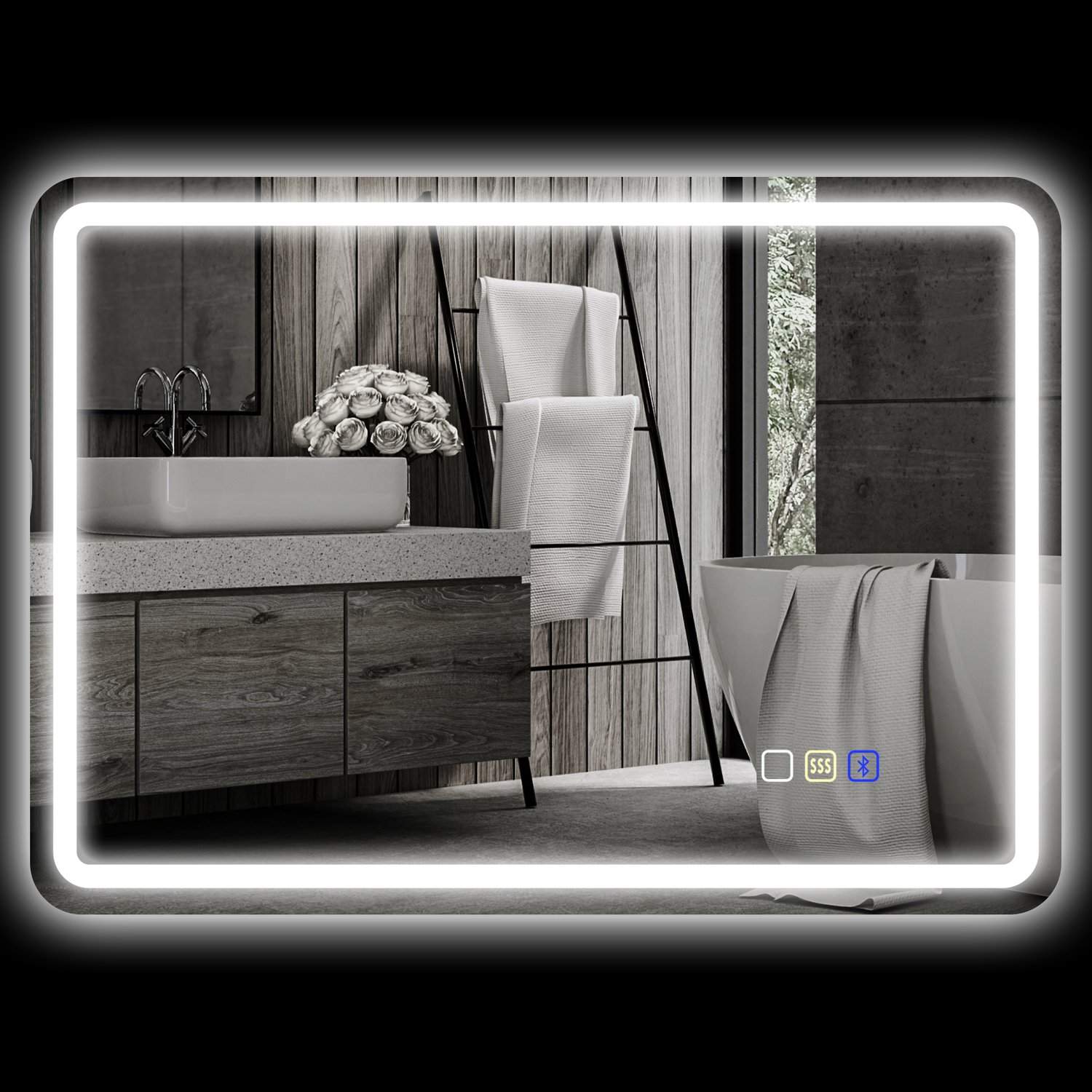 Baderomsspeil med LED-belysning, antiduggpute, 3 justerbare farger, 700 x 900 mm, sølv