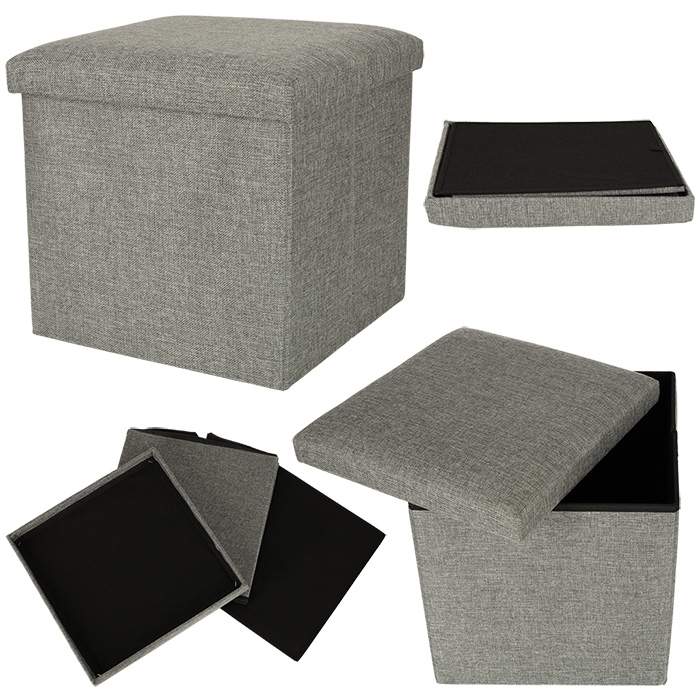 Grå sammenleggbar oppbevaringspuff, stabil 100 kg