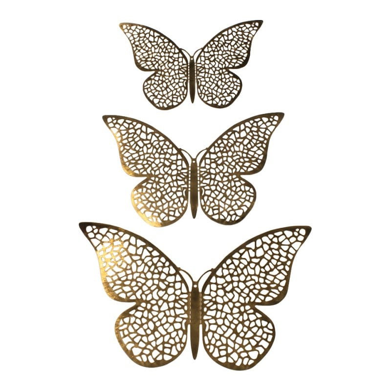 12 stk. 3D-Sommerfugler i metall, Veggdekorasjon - Gullnetting
