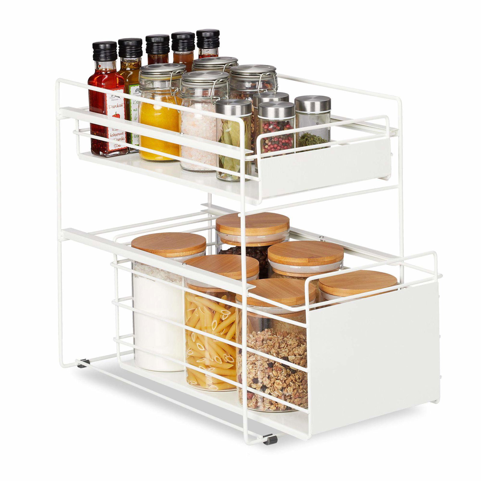 Krydderhylle med 12 glasskrukker