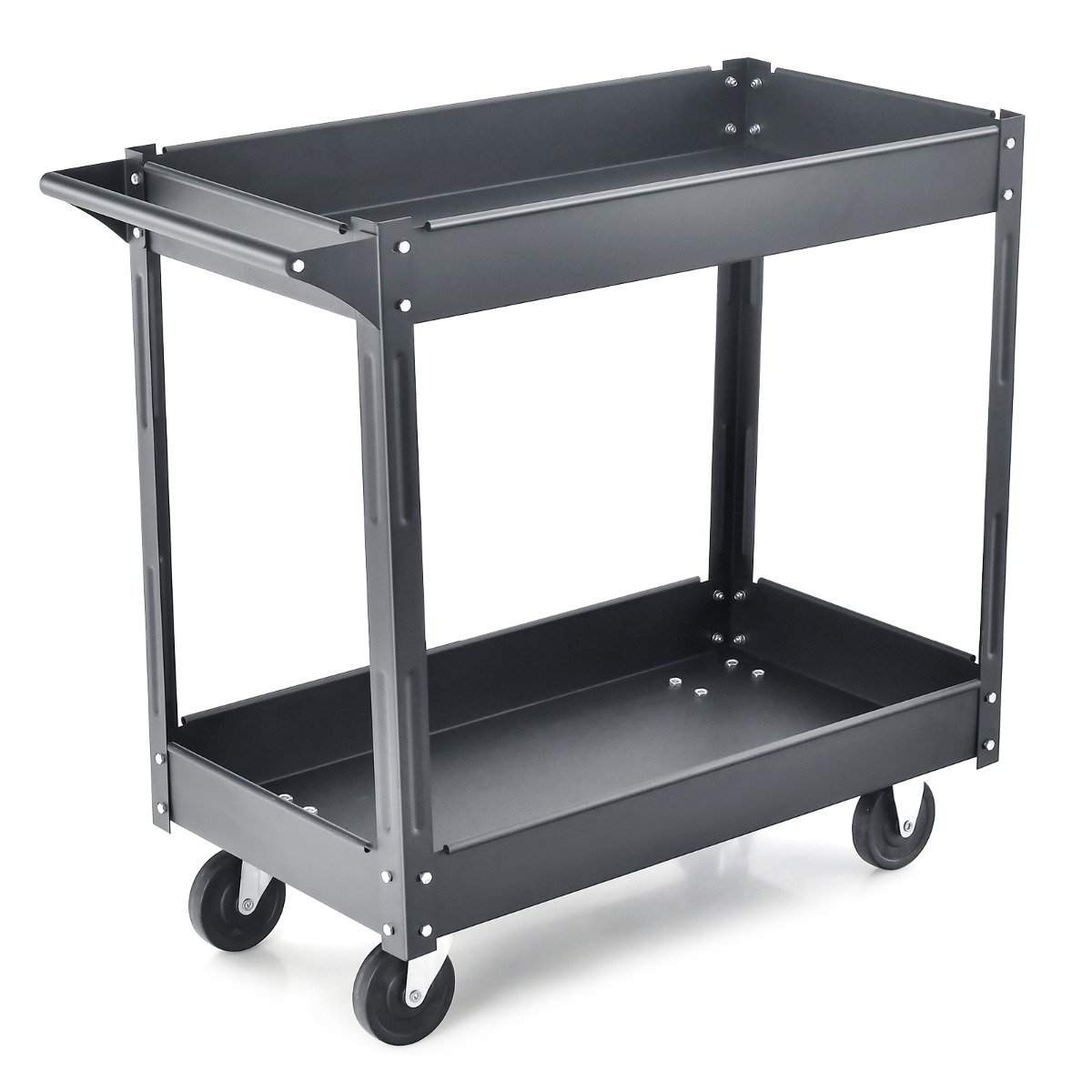 Verkstedvogn i metall med 2 nivåer og håndtak, flerbruksvogn, sort