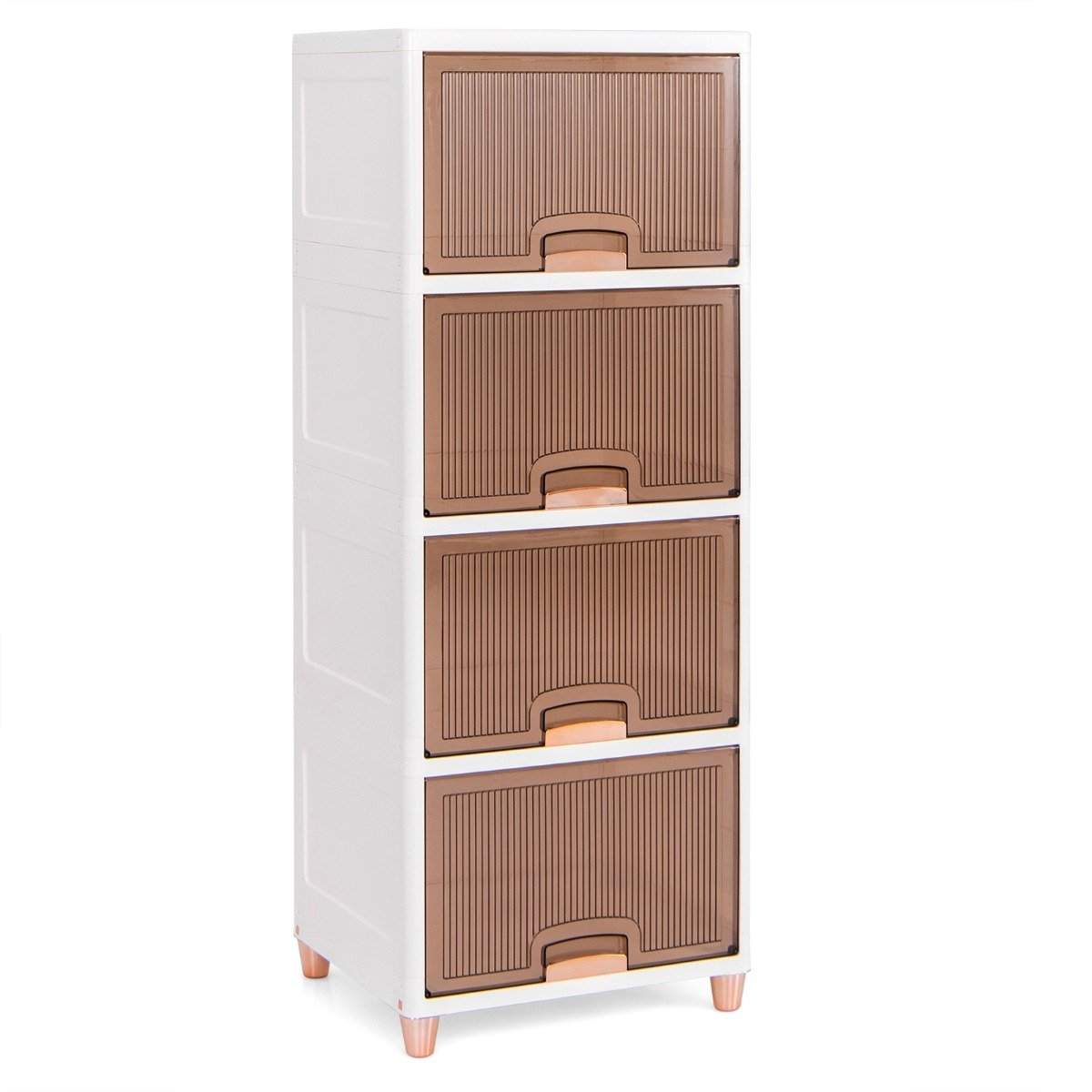 150 L oppbevaringsboks med magnetdører, sett med 4 stk, stabelbar plastboks, hvit