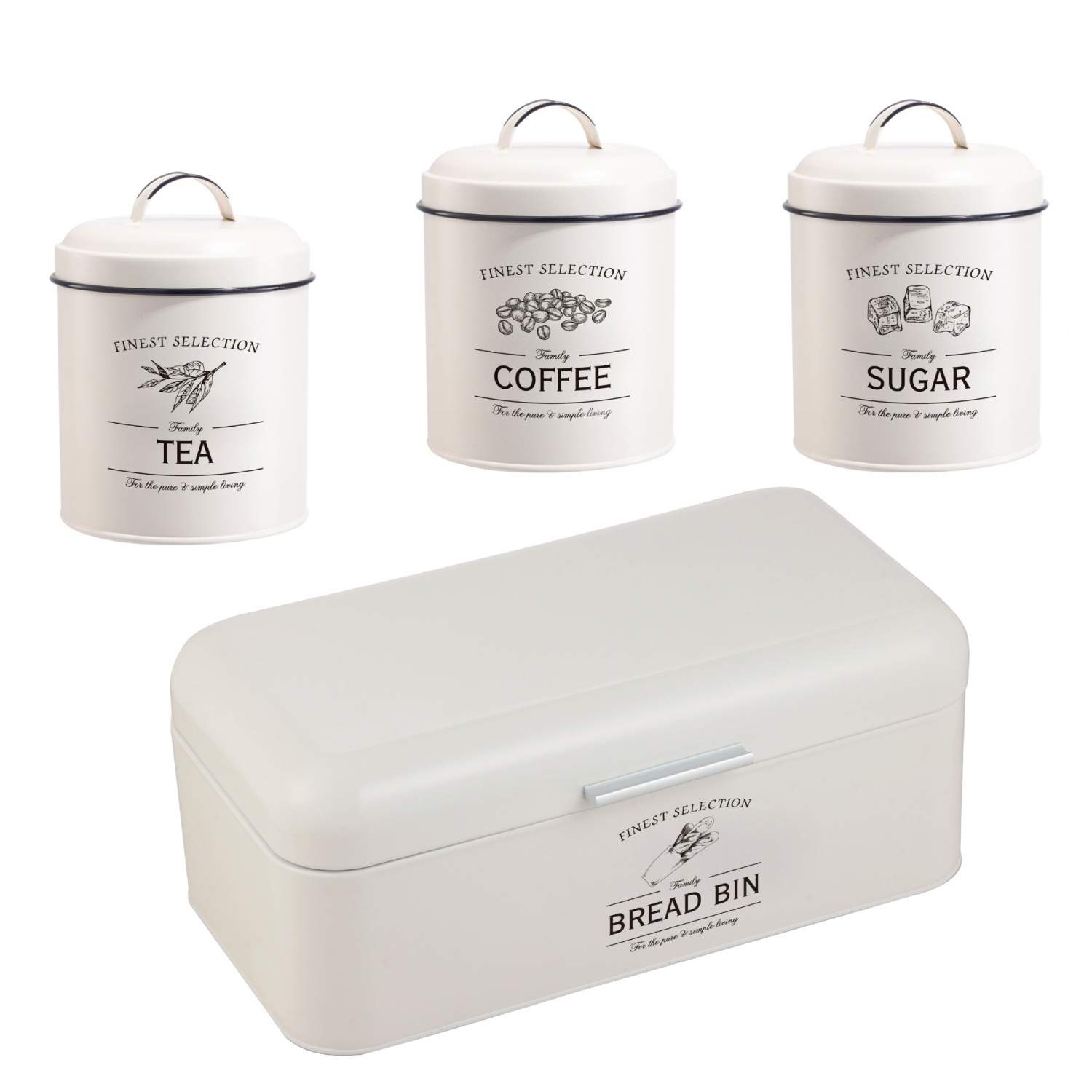 Herzberg HG-04418: 4 stykker vintage brødboks og beholdersett - matt krem