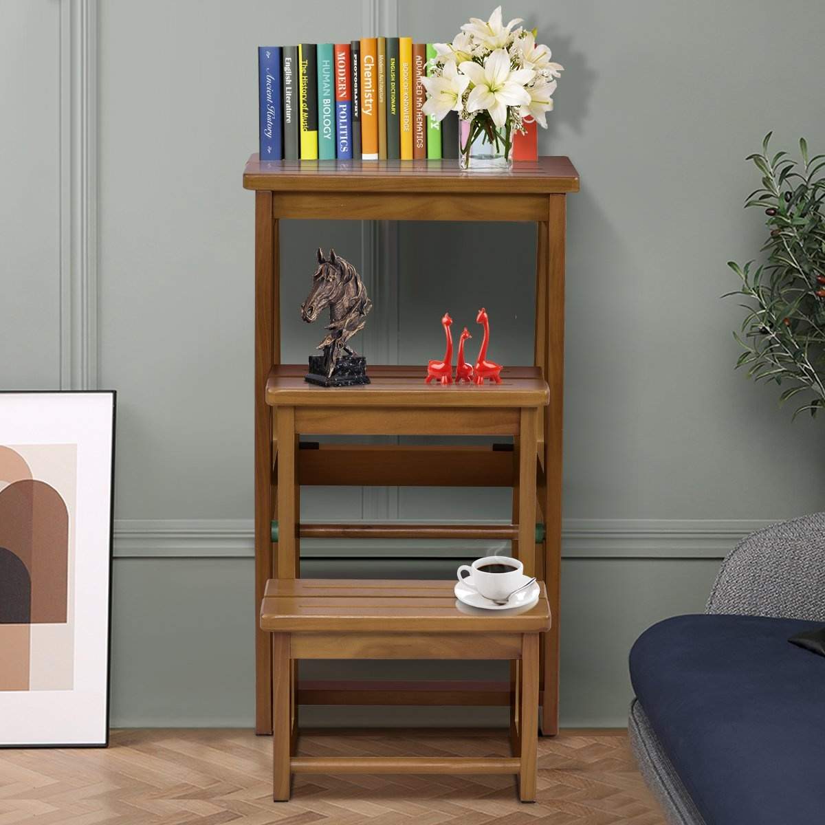 Stol stige stige stol krakk stige trinn stol trinn krakk trinn stige sammenleggbar 3 trinn valnøtt