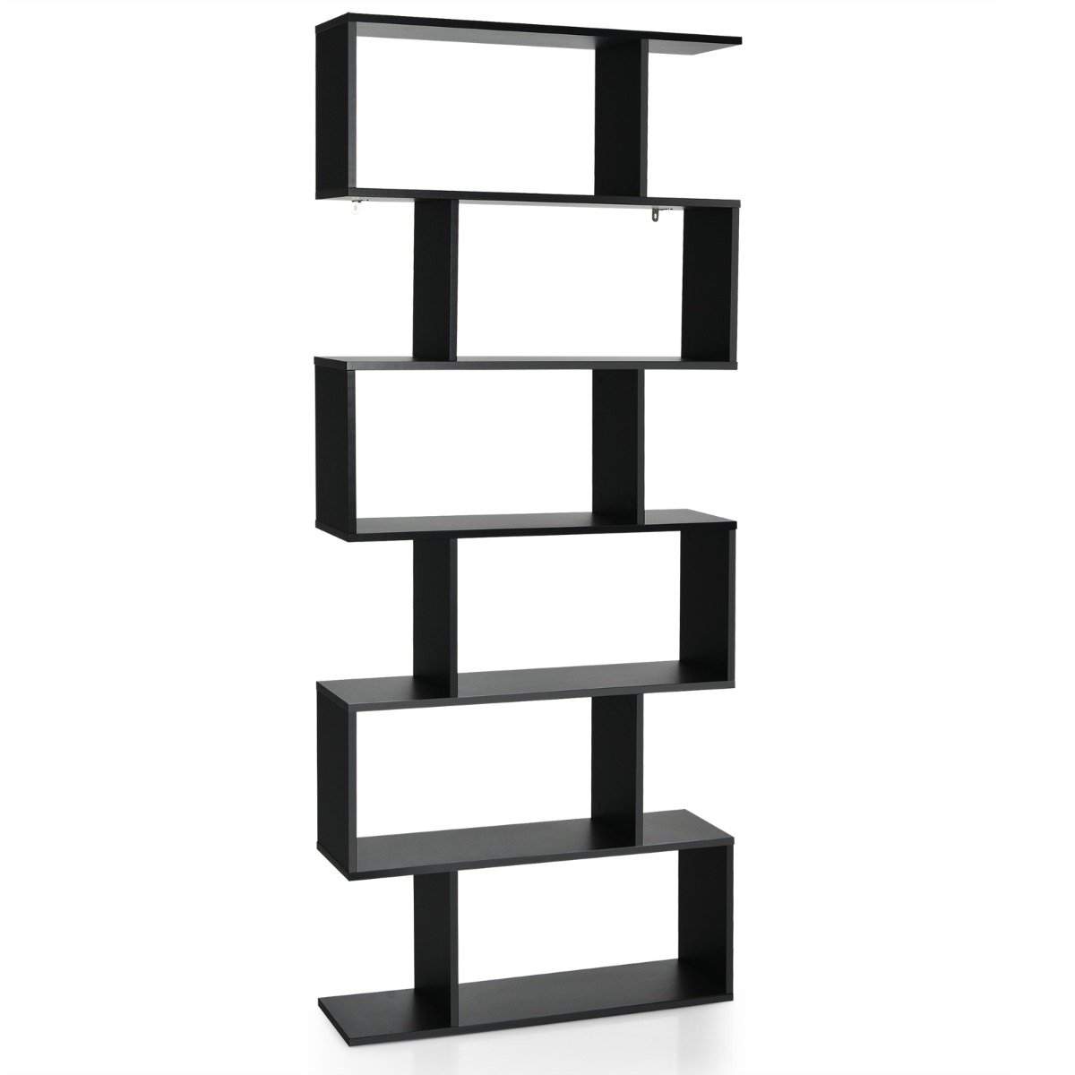 Stående hylle 6 nivåer S-form bokhylle oppbevaringshylle tre fargevalg sort