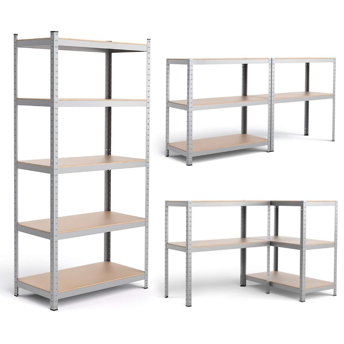 Oppbevaringshylle, kraftig hylle, plug-in hylle, metallhylle, 5 nivåer, verkstedhylle, 91 x 46 x 183 cm, sølv