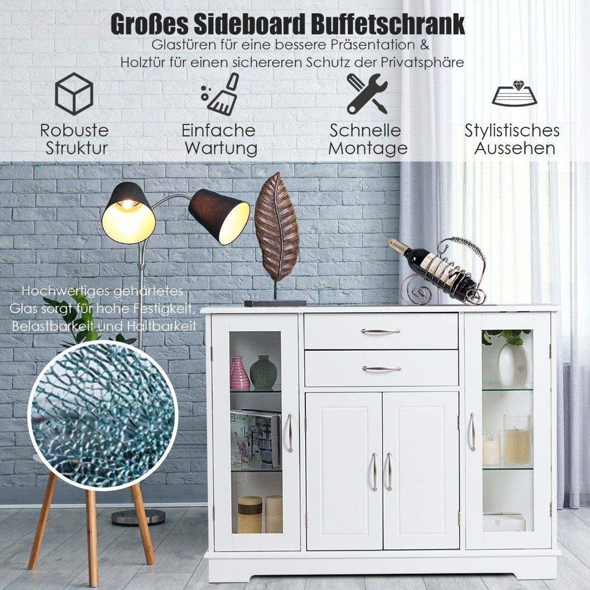 Oppbevaringsskap i tre med herdet glassdører og skuffer Hvit