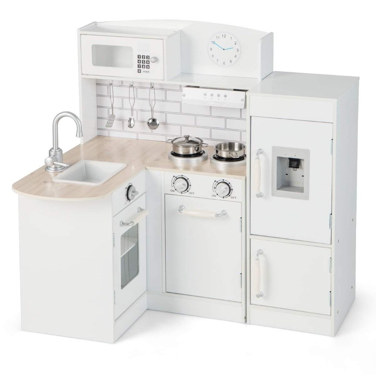 Hjørne lekekjøkken med separat kjøleskap & lyd & leketilbehør barnekjøkken hvit