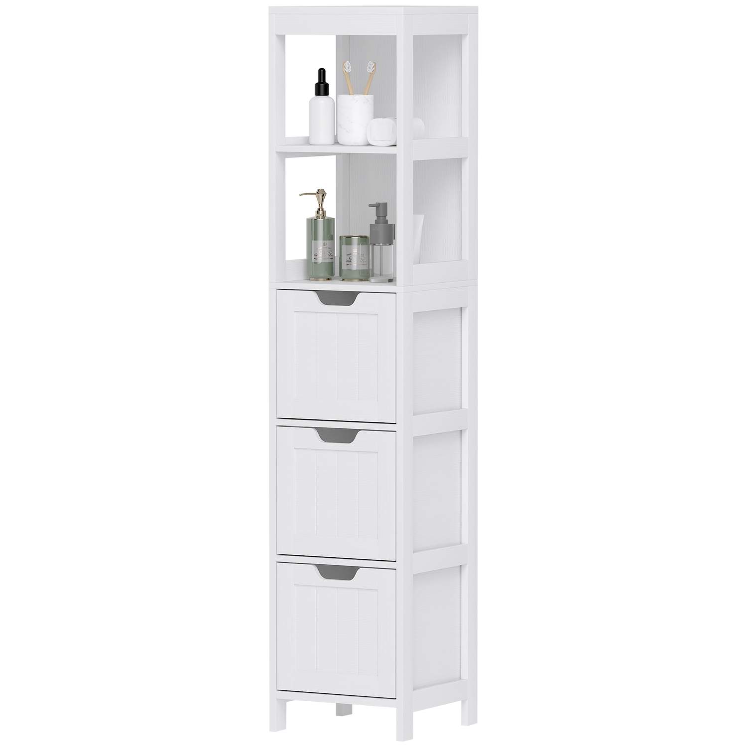 Baderomsskap baderomsskap, baderom høyskap med 3 skuffer, 2 åpne rom, oppbevaringsskap for bad, stue, hvit, 30 x 30 x 142,4 cm