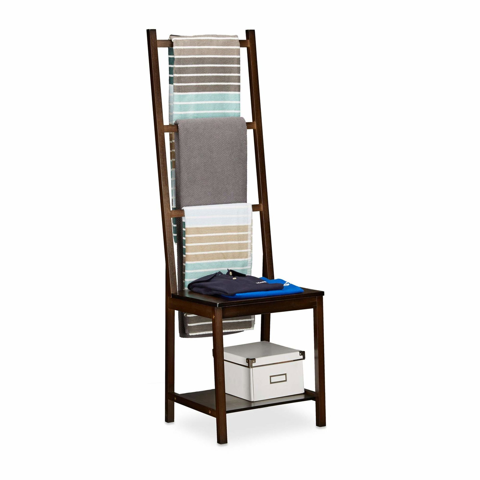 Stående håndklestativ med hylle
