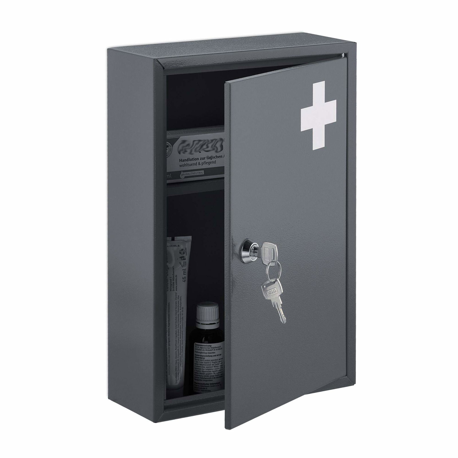 Hjemmemedisinskap med 3 rom 30 x 14 x 46 cm Låsbar barnesafe med nøkler Kaldvalset stål Hvit