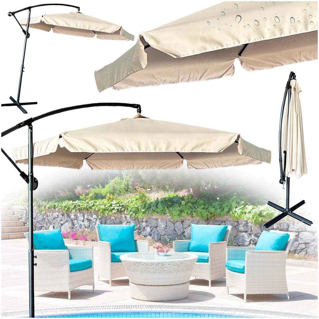 Utkragende paraply Ø260 cm parasoll med UV-beskyttelse 50+ vannavstøtende krankparaply med stativ, trekk, sveiv, vindlås, marked