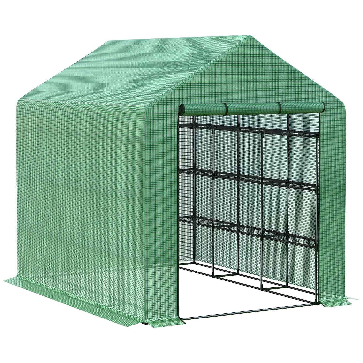 Grønt Walk-In drivhus med 8 hyller