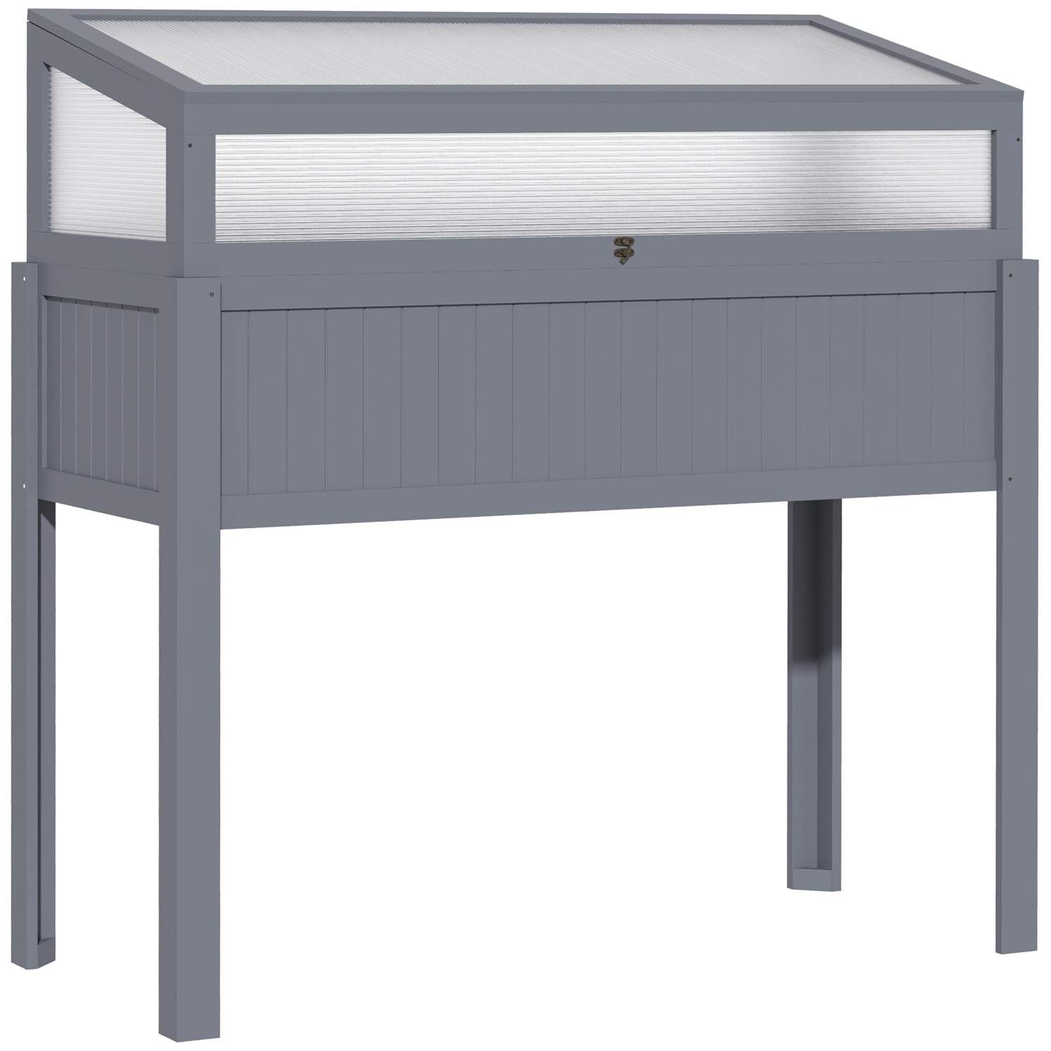 Grå høyseng i tre med drivhus 120x54x112 cm