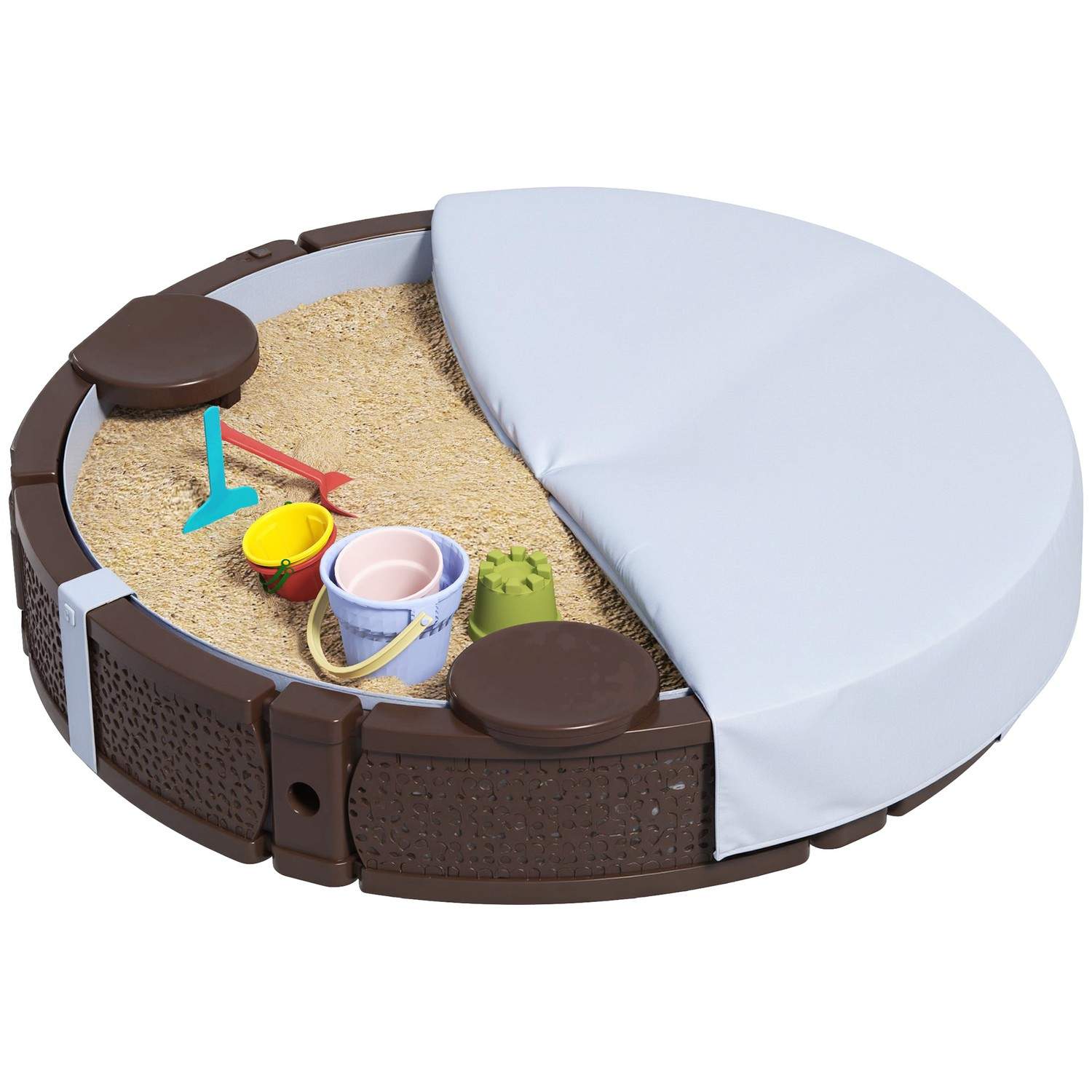 Sandkasse, sandkasse sandkasse med 3 seter, vanntett bunn, værbestandig beskyttende presenning, for 1,5-5 år barn mørkebrun