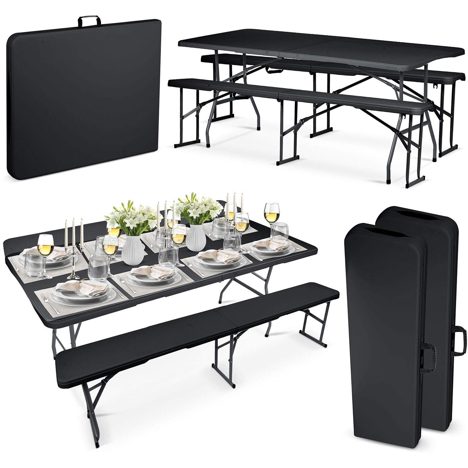 Catering sett hage klappbord + 2 benker 180 cm Plonos sort