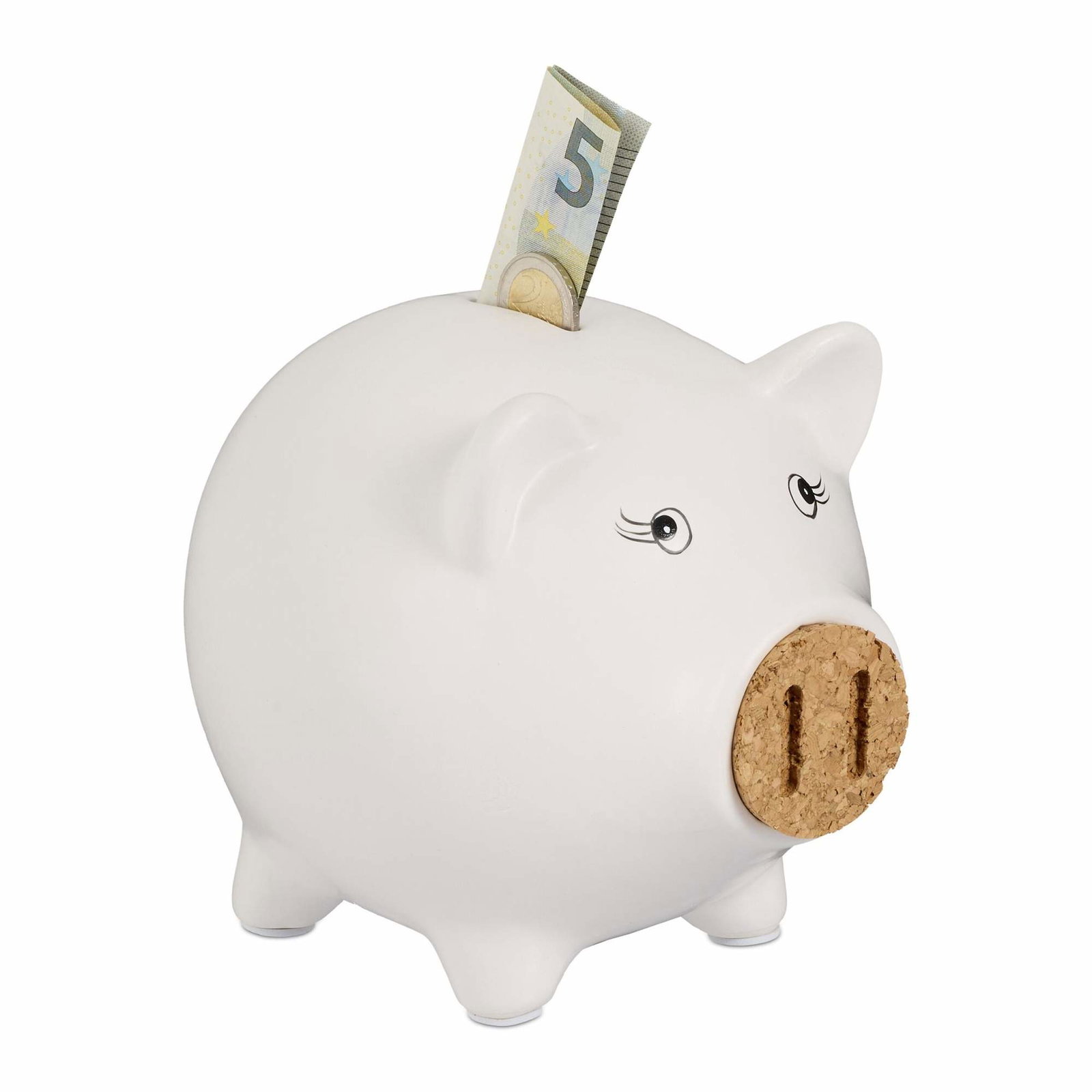 Hvit sparegris med korknese