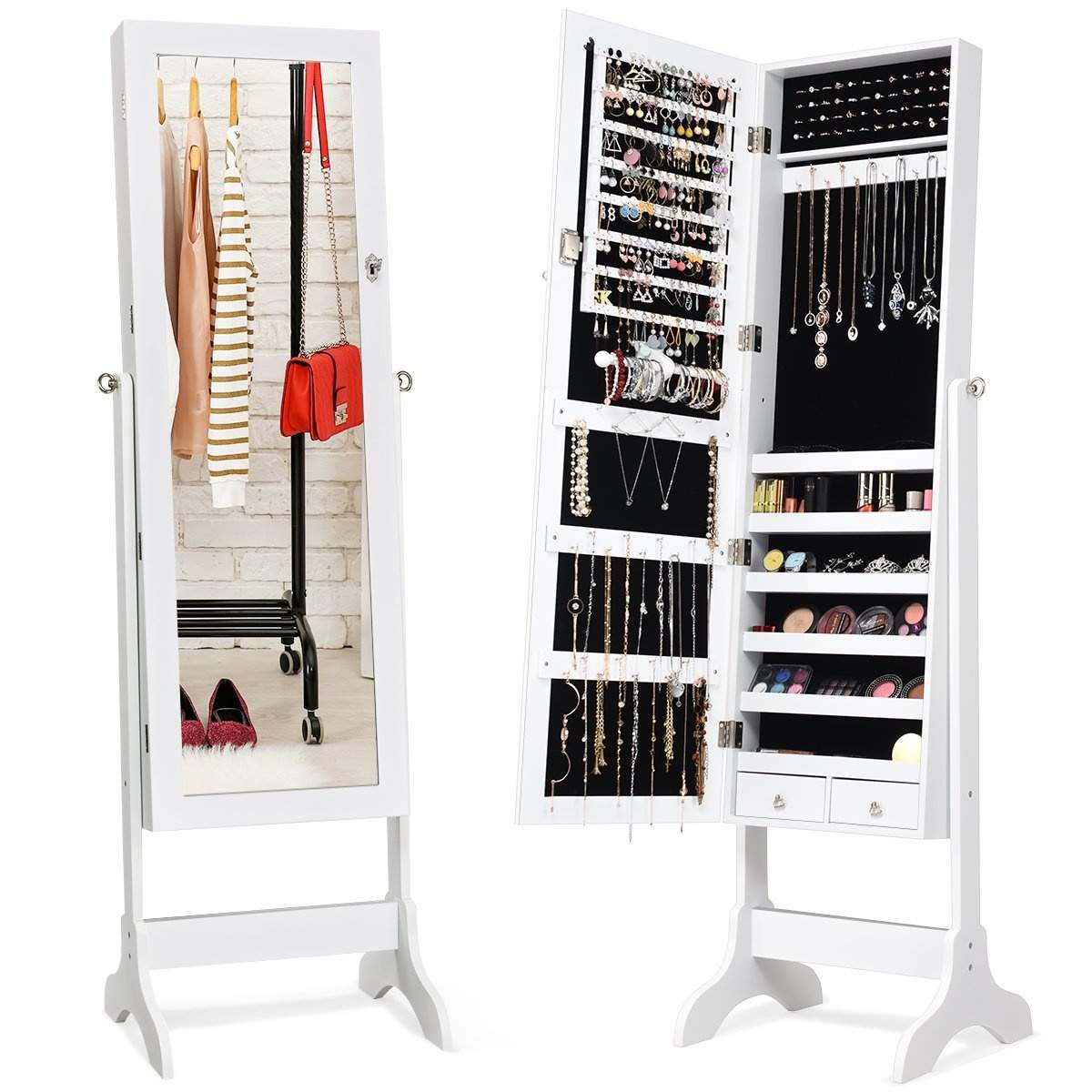 Smykkeskap låsbart chmuck speilskap med speil 46 x 37 x 156 cm hvit