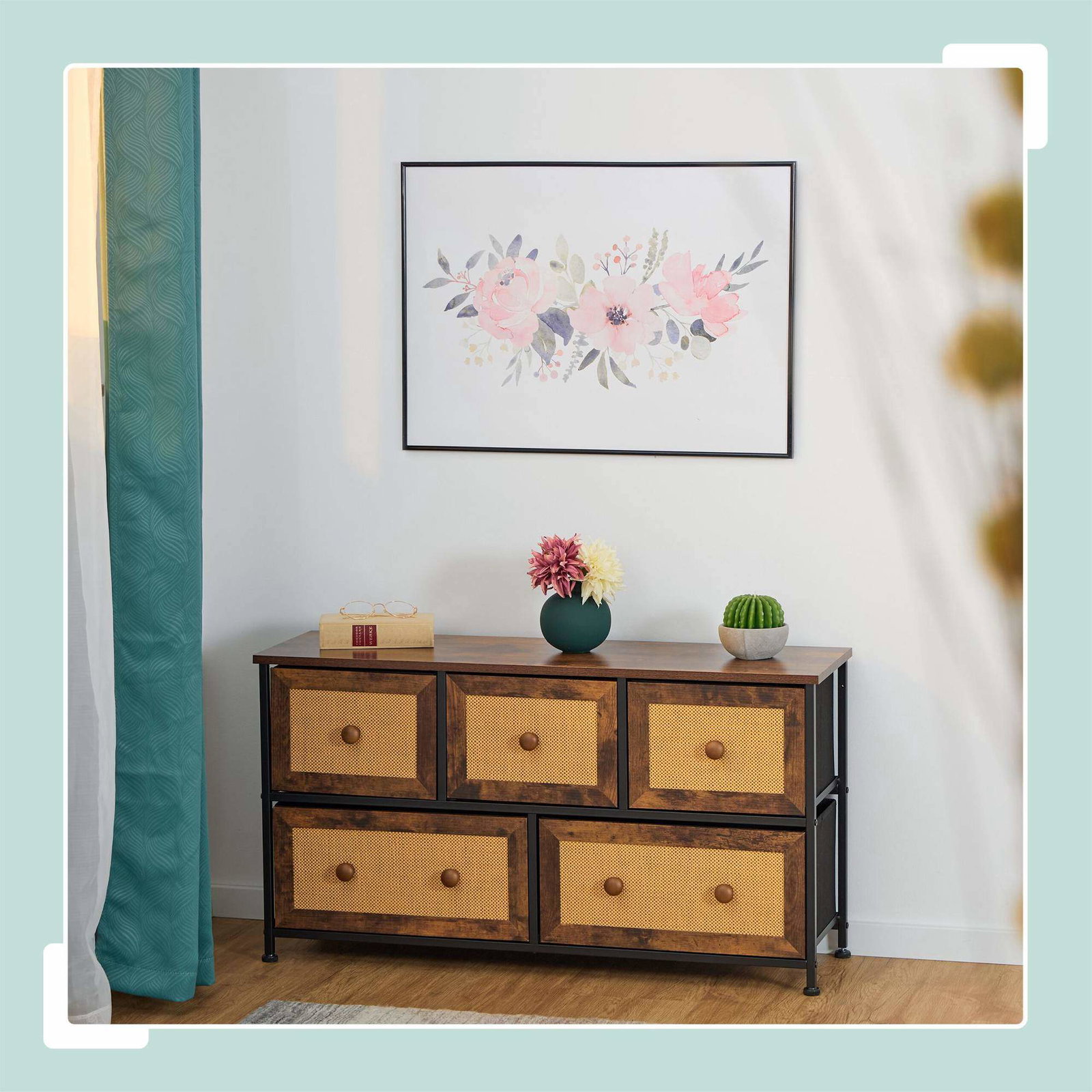 Kommode med 5 skuffer i rottinglook