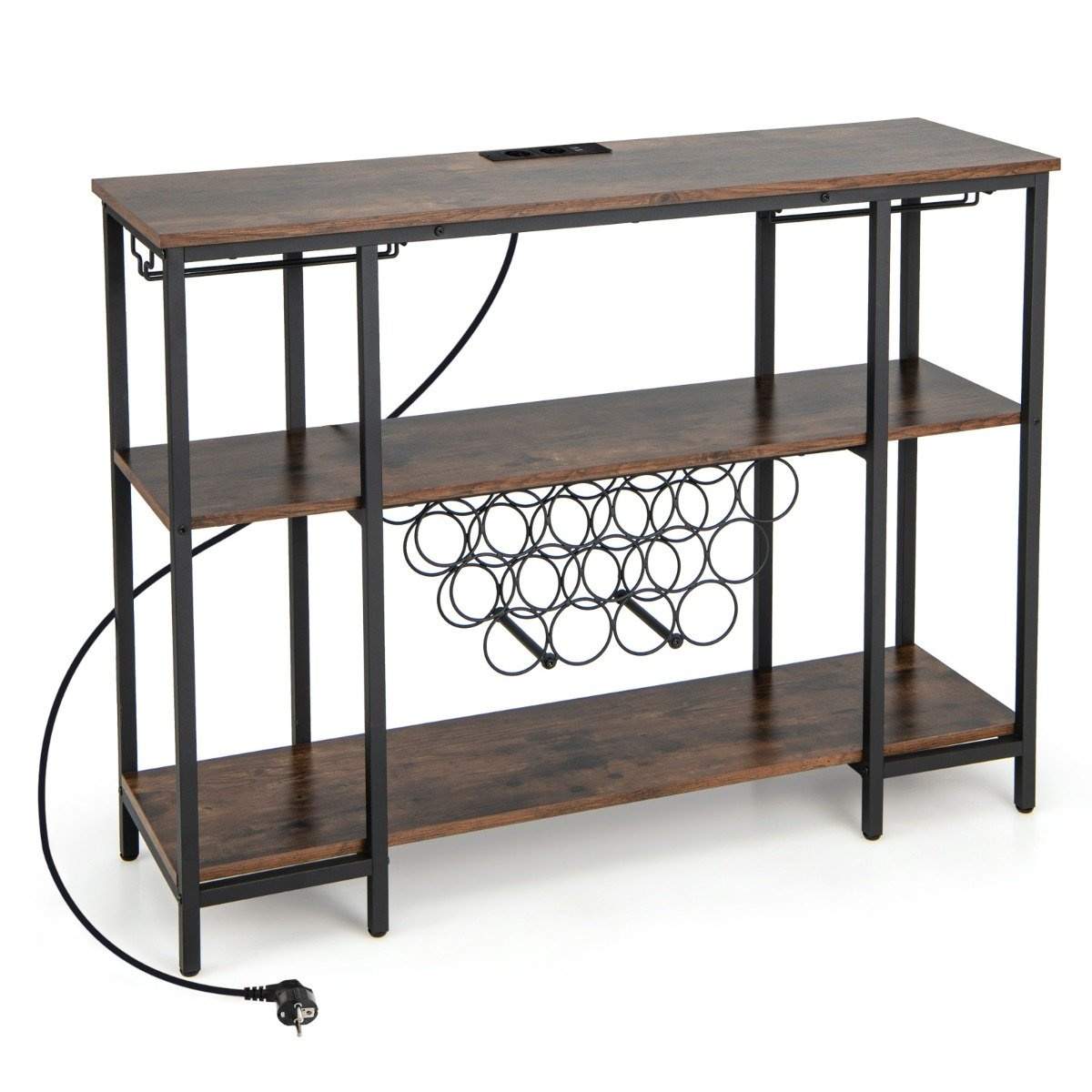 Industriell vinstativ med glassholder og hyller og stikkontakter for 15 vinflasker Vinskap Brun