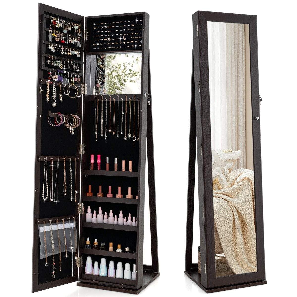 Smykkeskap med helspeil & integrert sminkespeil speilskap mørk kaffe