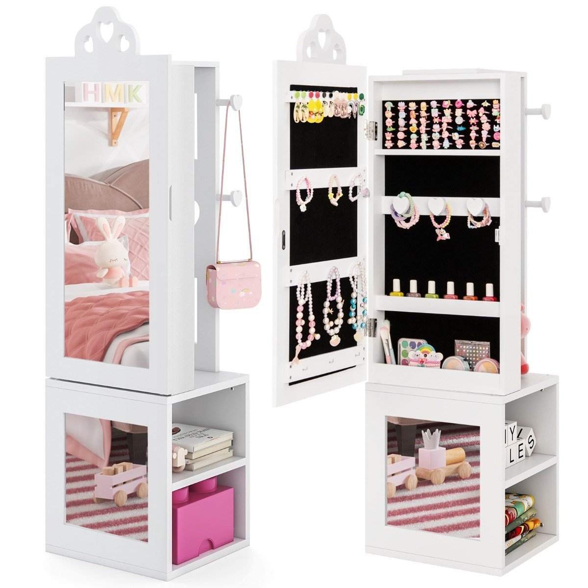 3 i 1 speilskap med full lengde speil & Klesstativ barnesmykkeskap hvit