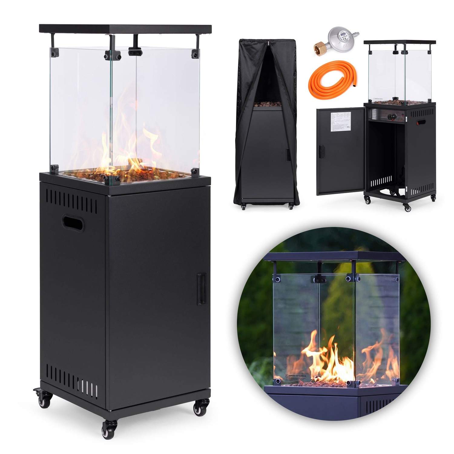 Gassvarmer, strålevarmer, 13 kW, glass, for hage og uteplass, regulator, vulkanske steiner, dekke, MultiGarden