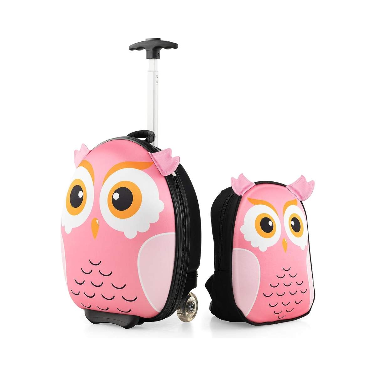 2-delt barnekoffert & ryggsekk med hjul og 3-trinns teleskophåndtak 12"+16" barnevognugle
