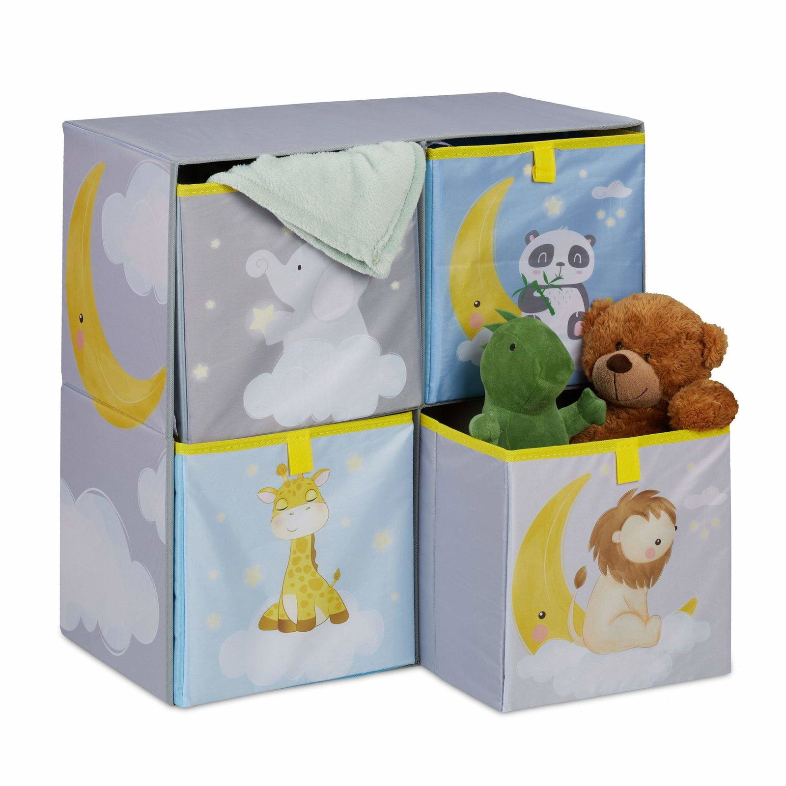 Lekeboks med lokk, Lekekiste med søtt dyredesign, Oppbevaringsboks med lokk Sikkerhetshengselhåndtak, for barnerom, soverom, grø