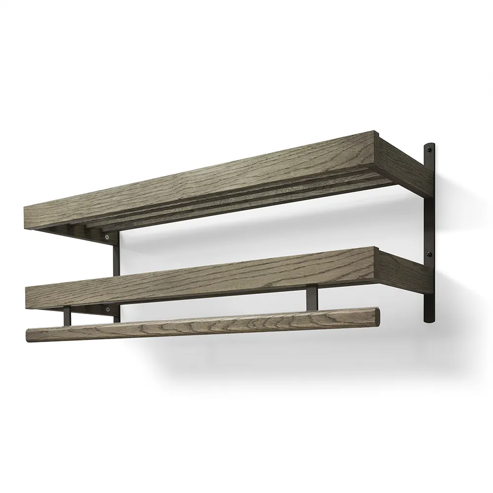 Oscarssons Möbel, Nadja skohylle 50 cm 2 nivåer veggmontert røkt eik/mattsvart stål