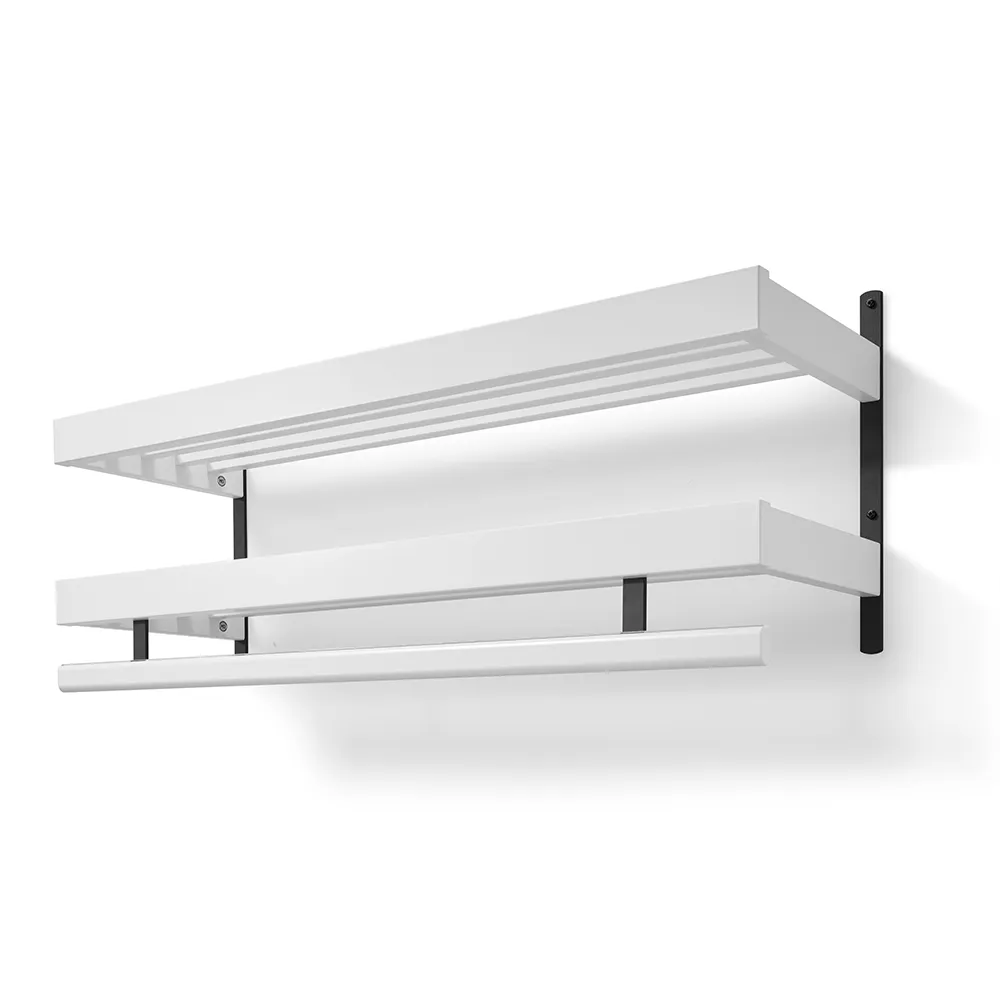 Oscarssons Möbel, Nadja hattehylle 100 cm 2 nivåer Hvitlakkert bjørk/mattsvart stål
