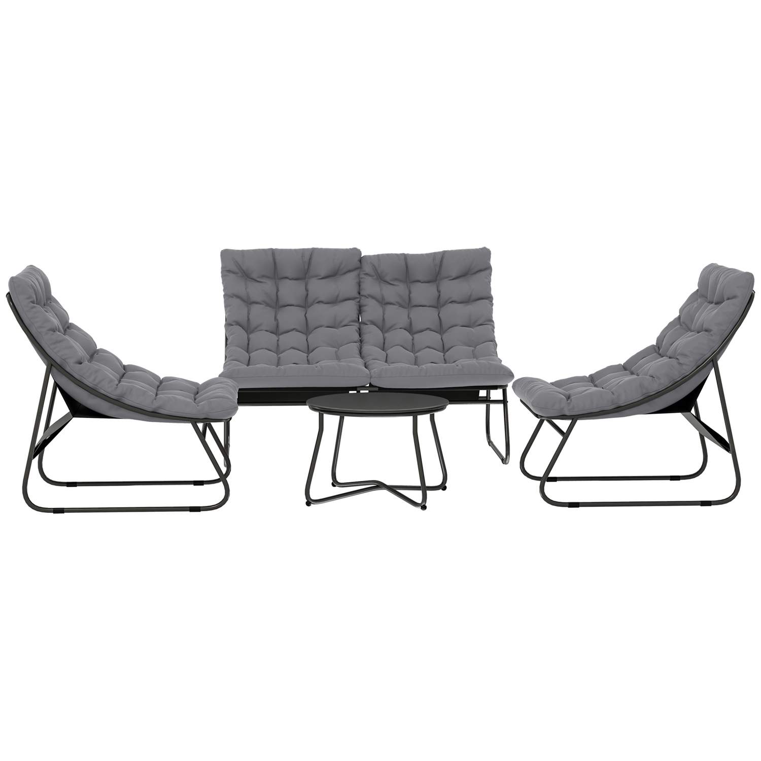 Hagemøbelsett i stål for 4 personer, værbestandig balkongmøbelsett med 2 sofaer, lenestoler, sidebord, sittepute, uteservering,