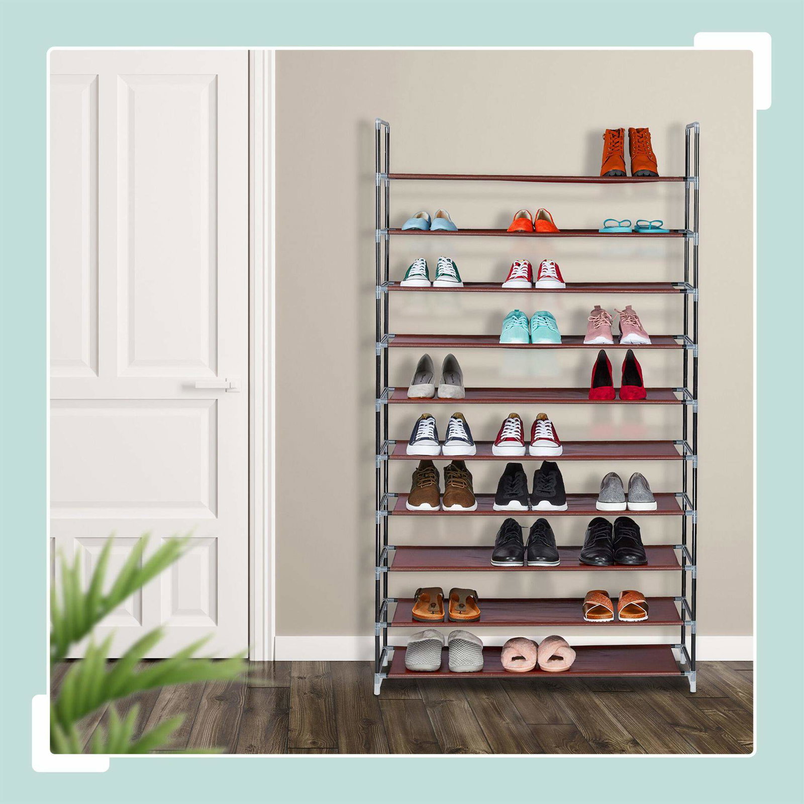 Skostativ i stoff for 50 par sko