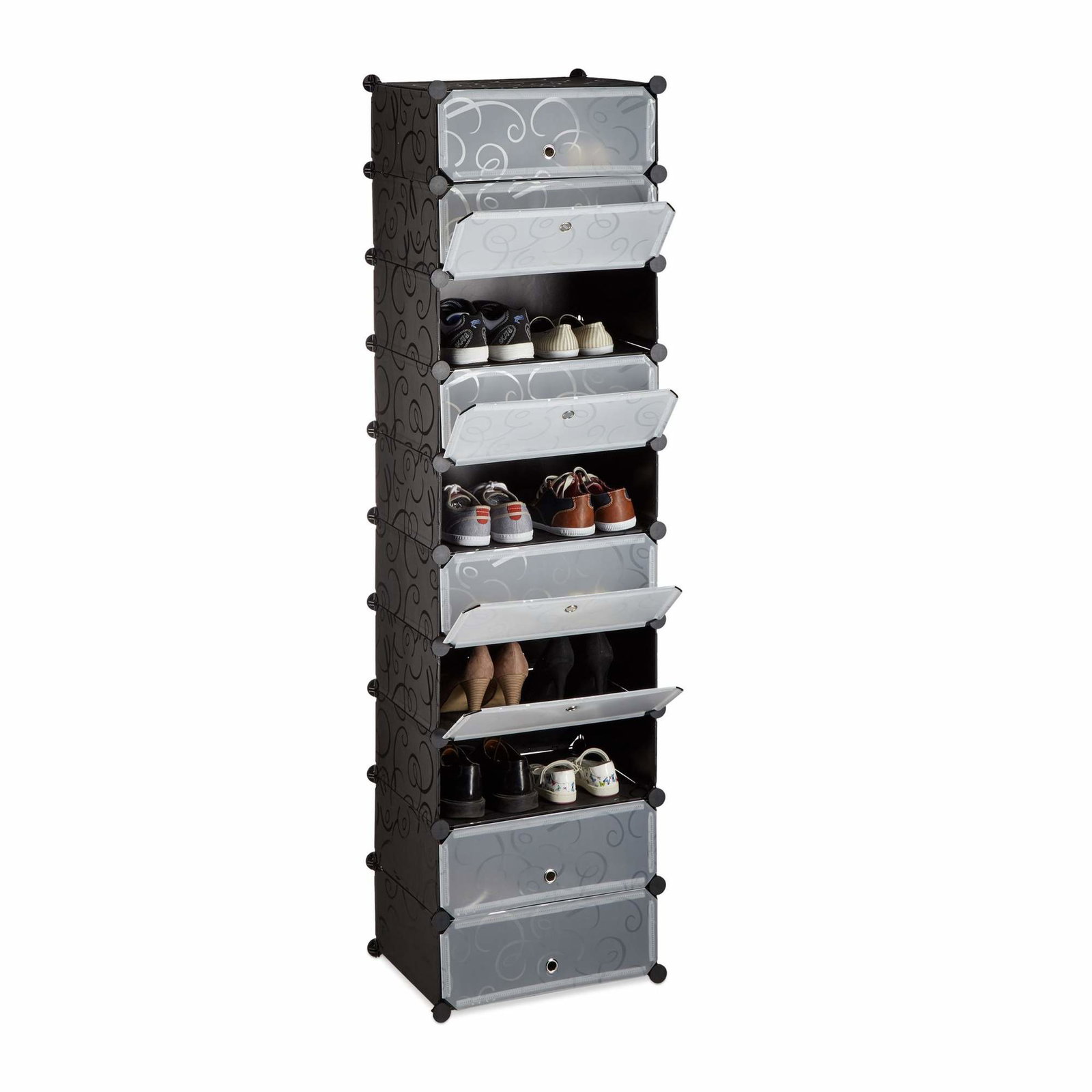 Stabelbar skohylle med 4 hyller