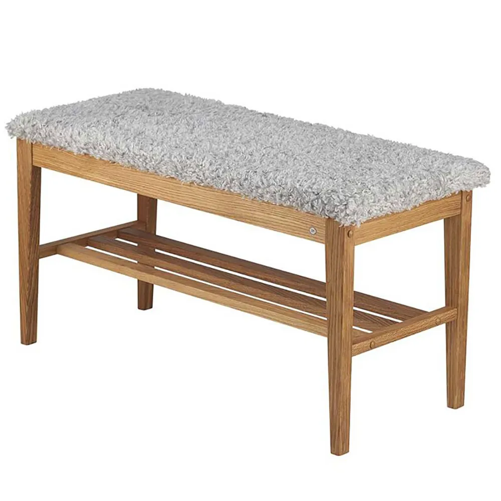 Oscarssons Möbel, Meja Bench Hvitlakkert bjørk/skinnlook Lys grå